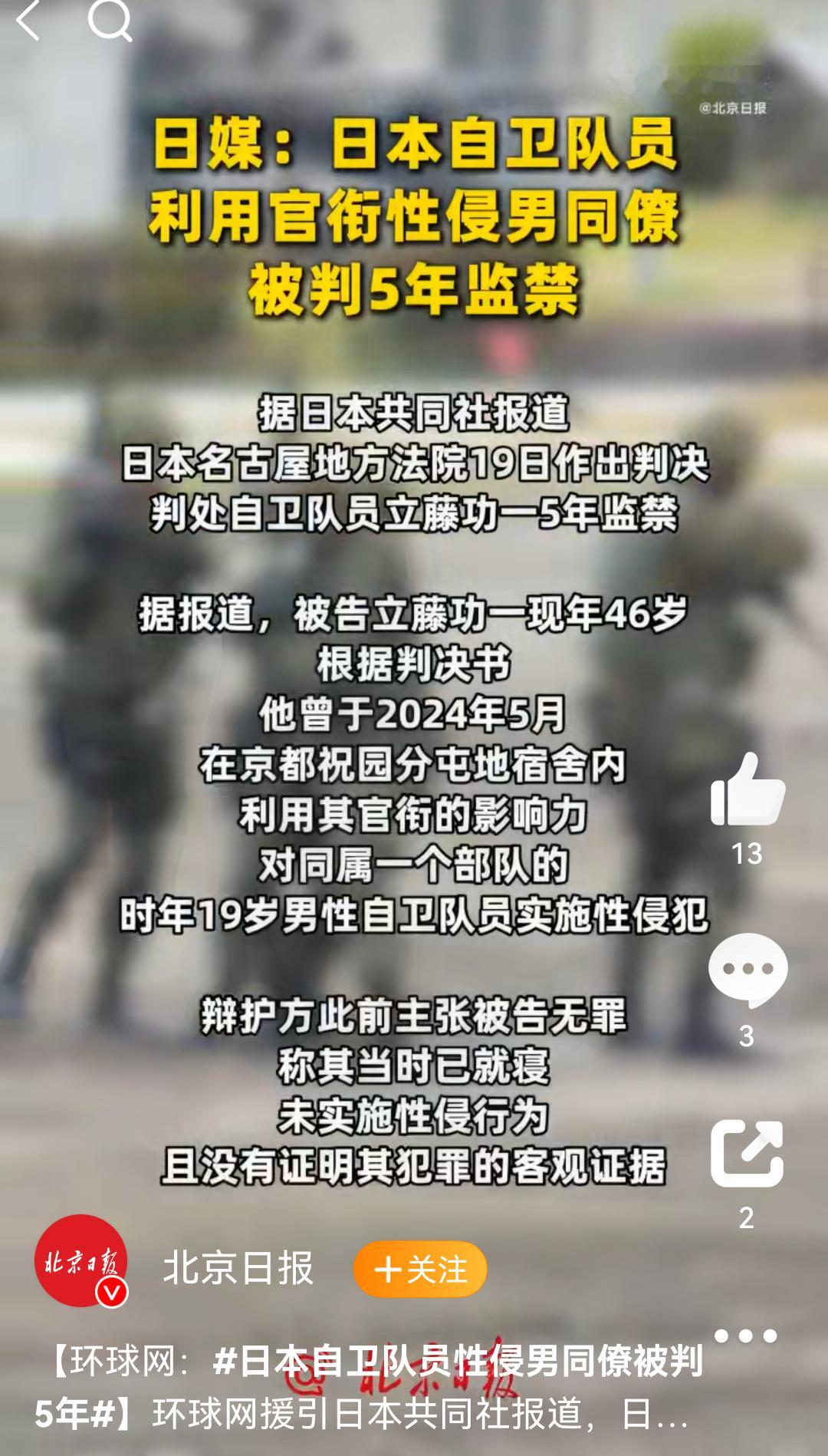 日本自卫队员性侵男同僚果然是日本。