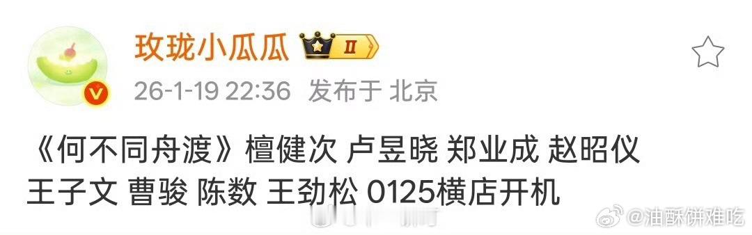 《何不同舟渡》演员阵容:檀健次卢昱晓郑业成赵昭仪 王子文 曹骏陈数 王劲松,1月25横店开机