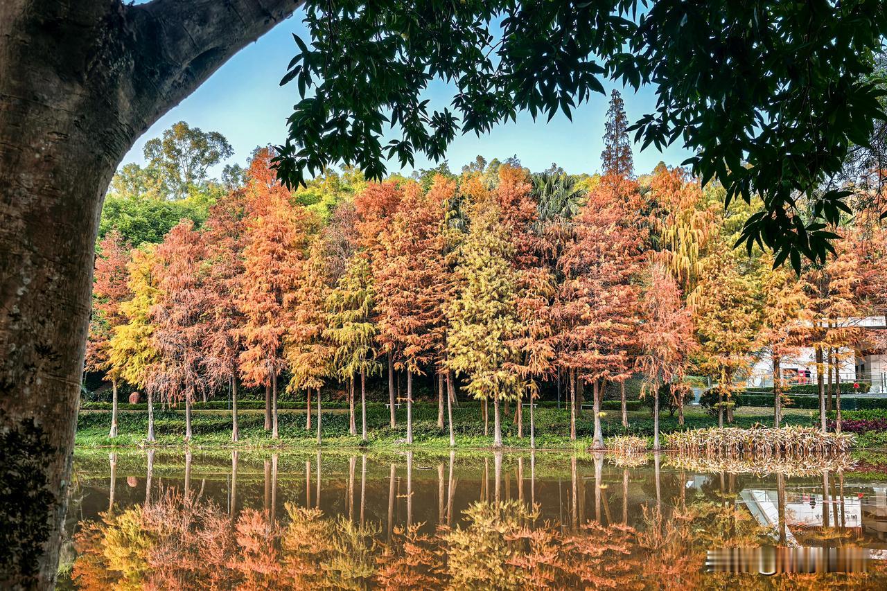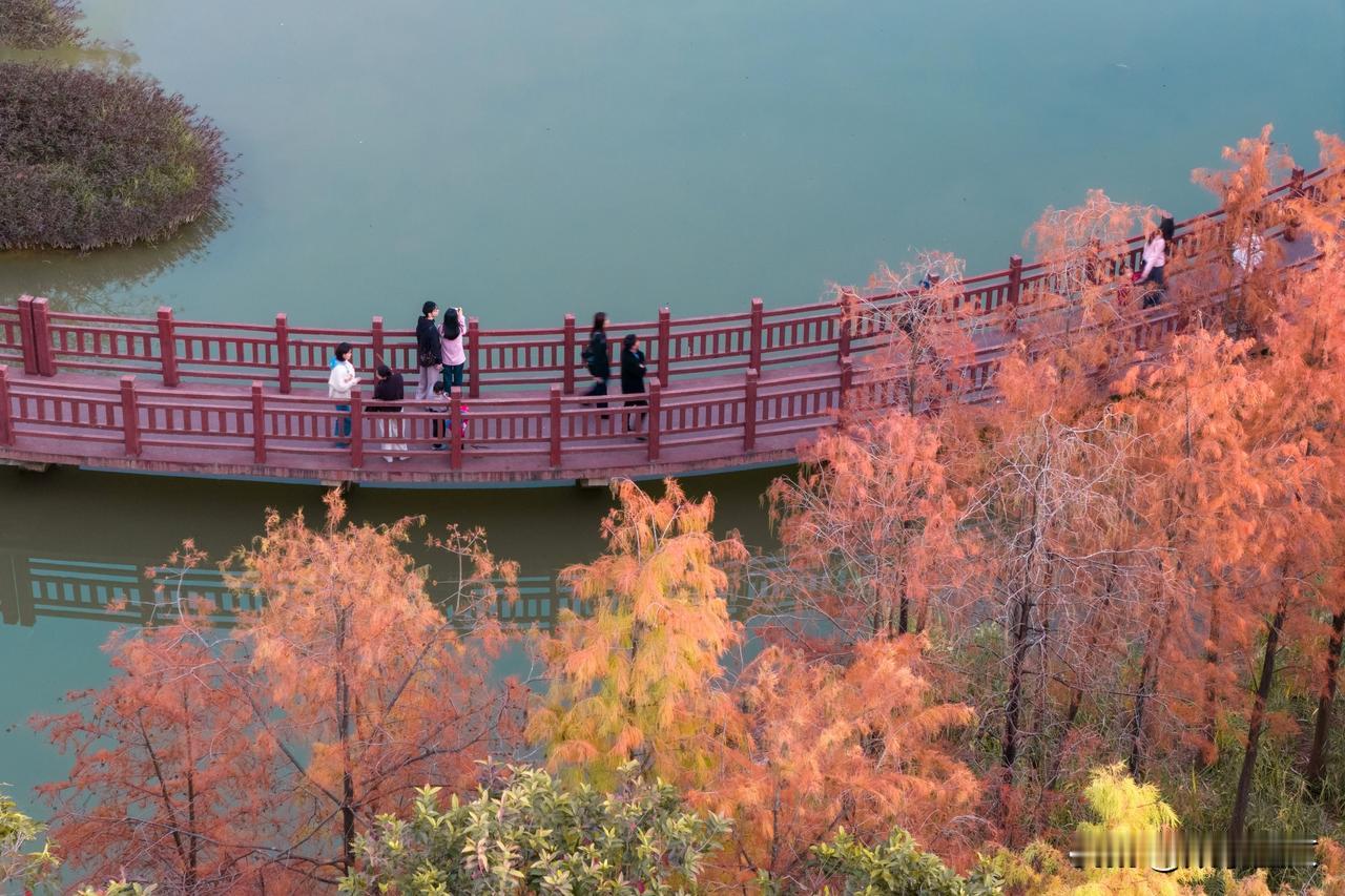 【美图与诗】咏红水杉 暮秋霜辰,风清天澄。临水凭栏,见红杉卓立,傲对寒氛。虬枝直指穹苍,丹叶遍染秋岸。冰凝骨,挺劲姿于霜天;风动影,漾绮梦于林杪。不与群芳争艳,独抱素志凌寒。历霜雪而心愈坚,经风露而色更烈。余观此景,遂作小诗,以赞其魂: 水畔秋深叶尽丹,虬枝夭矫指穹端。 冰凝劲骨英姿挺,风动流霞绮梦欢。 岂与繁花争媚态,偏持素志傲清寒。 丛中最爱霜林景,满目红妆醉里观。 落羽杉 公园 龙岗 【图片摄自深圳龙岗红花岭公园、龙城公园、湿地公园】