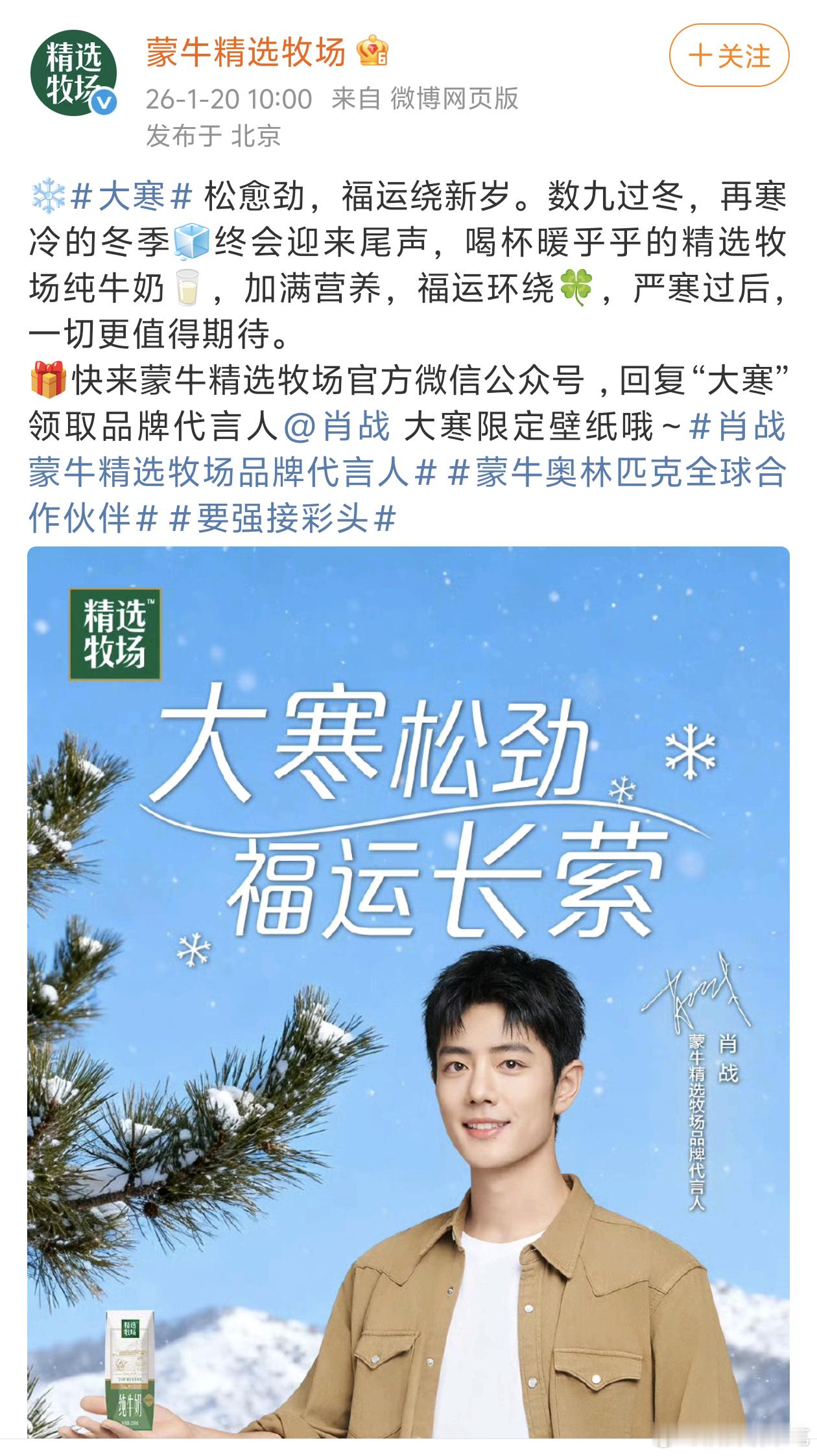 蒙牛就是这么爱肖战,一边精选牧场发肖战物料,另一边每日鲜语预热