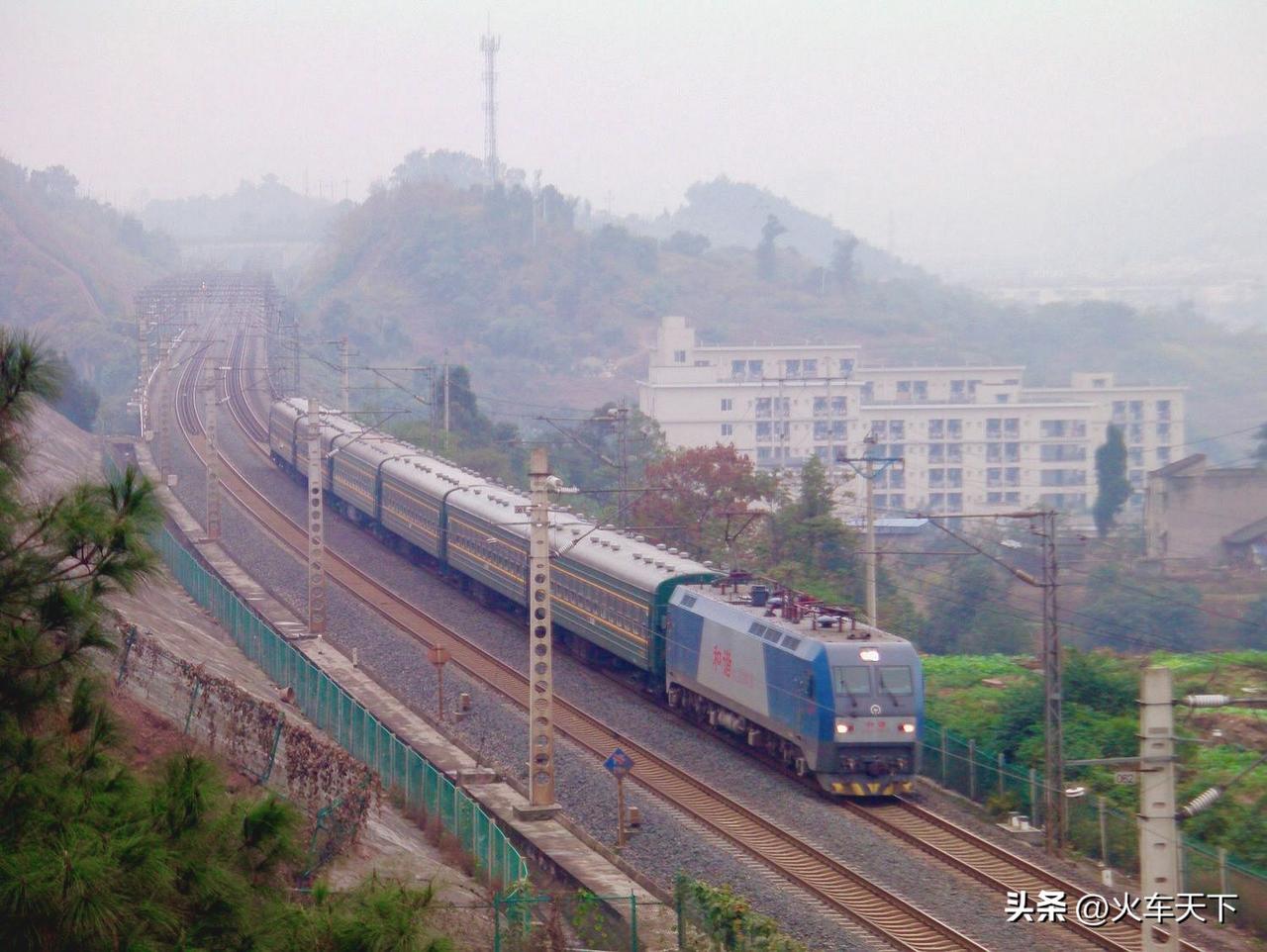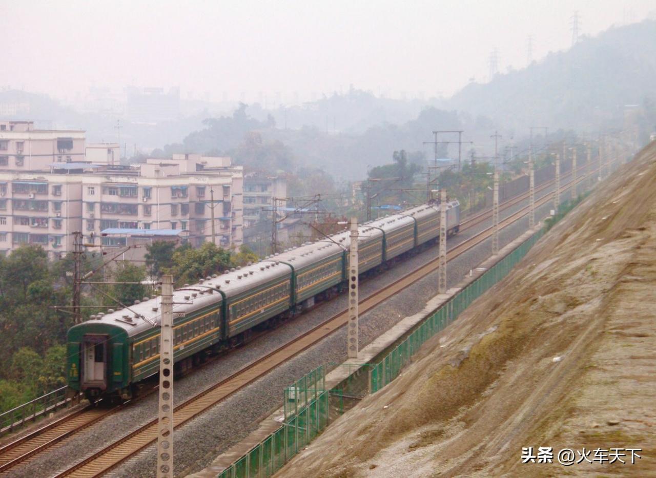 这个才是真正意义上的绿皮车,22型系列客车,拍摄于十几年前,这个是不载客的客车车底回送。22型系列客车是20世纪后半页中国铁路最常见的客车车型,侧面有加强筋线条,顶部有通风孔,进入本世纪初,部分还在使用的22型系列客车进行了翻新改造,车窗由原来四角为直角改造为四个角有弧度,图中就是翻新版22型系列客车。不过现在22型系列客车基本淘汰,毕竟这款车型停产也三十多年了。