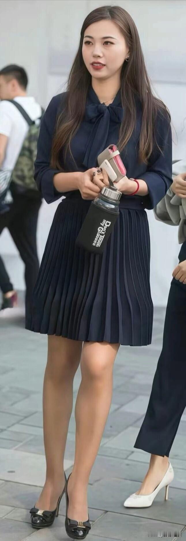 街头偶遇一位穿藏青色百褶裙的姑娘,气质清爽又利落,简单的穿搭也能让人眼前一亮。