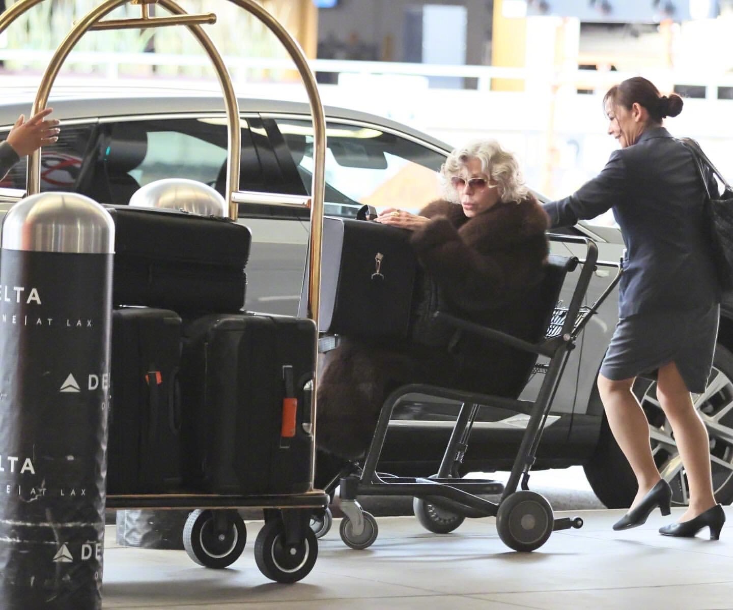 88岁的传奇偶像简·方达现身洛杉矶国际机场。皮草回归,老人家也将自己压箱底的奢华皮草大衣拿了出来。