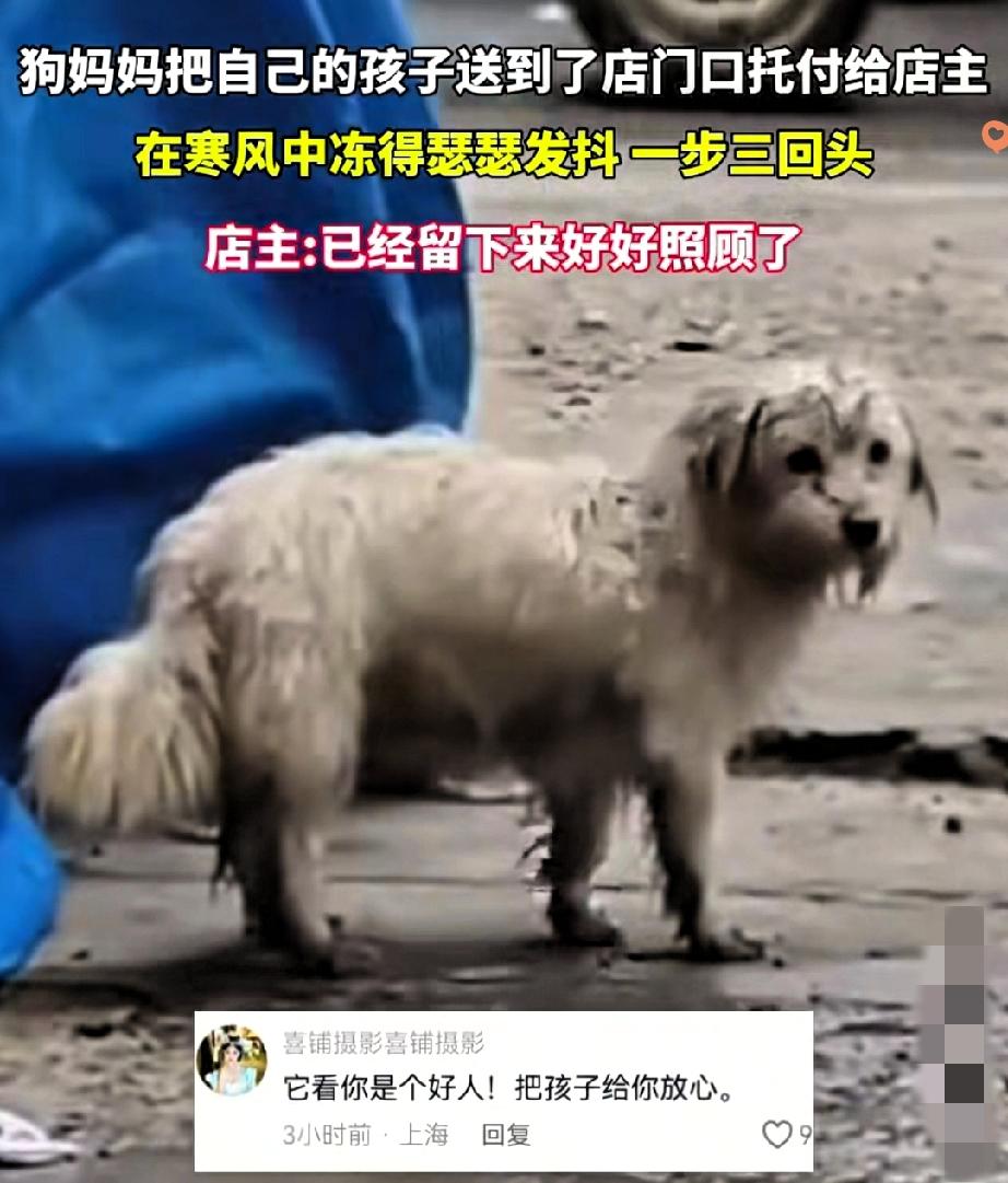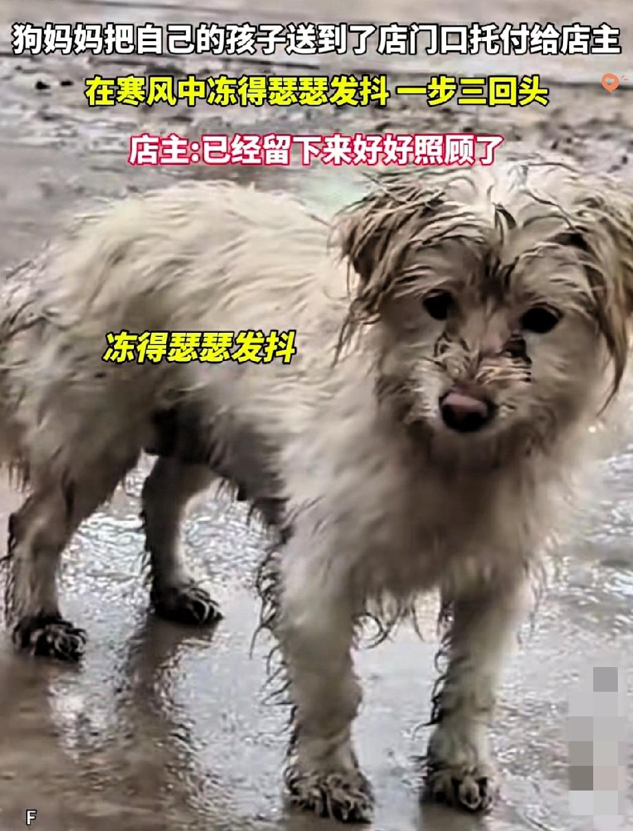 看哭了! 谁能想到一只流浪狗妈妈,会用这样孤注一掷的方式,给孩子谋一条生路。 寒风里它浑身湿透、冻得发抖,却硬是把小狗崽领到店门口,那眼神里的牵挂和不舍,看得人鼻酸。 它没有哀求,只是静静看了孩子最后一眼,就头也不回地跑向马路对面,它不是不爱,是太爱了,爱到愿意亲手推开孩子,赌一个安稳的未来。 幸好店主人接住了这份沉甸甸的托付,抱起小狗崽的那一刻,就是接住了生命的重量。 都说母爱不分物种,这只狗妈妈用最笨拙也最伟大的方式,诠释了什么叫为母则刚。 它或许观察了这家店很久,才敢把孩子的命运,交到陌生人手里。 世间万物皆有灵,这份跨越物种的信任,真的太戳心了。 希望小狗能在新家无忧无虑长大,也盼着狗妈妈能遇到心软的神,熬过这个寒冬。 如果你遇到这样的流浪狗,会选择伸出援手吗?