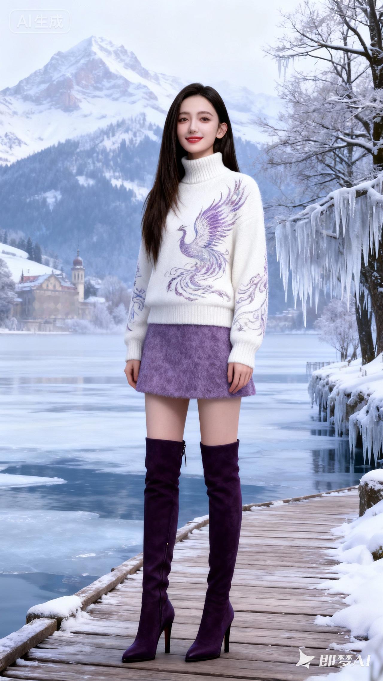 春日穿搭指南:蓝色连衣裙+白色长靴,清新自然,时尚又减龄!