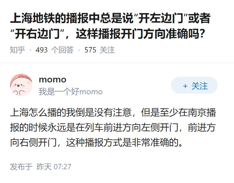 上海地铁的播报中总是说“开左边门”或者“开右边门”,这样播报开门方向准确吗?