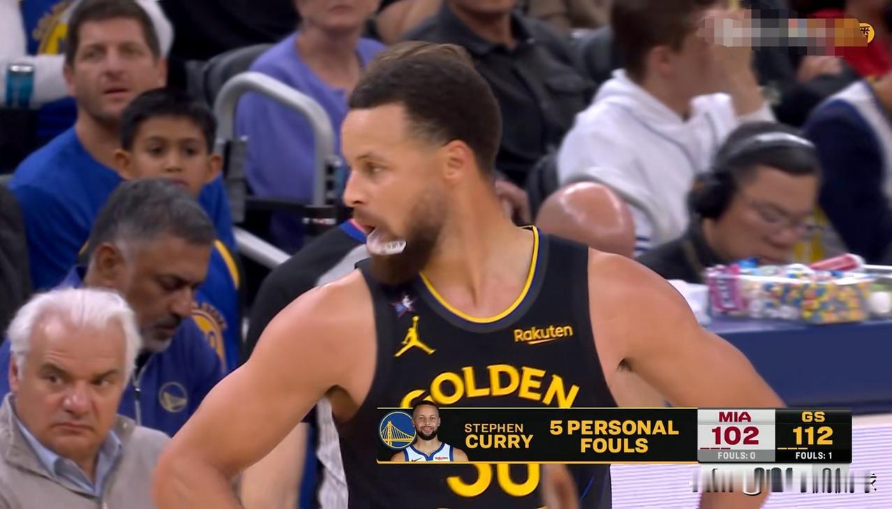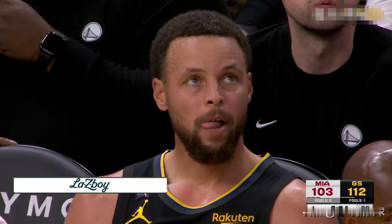勇士超级球星库里真是忧心忡忡!在今天勇士主场迎战热火的比赛中,当时比赛进行到了第四节的9分04秒,库里在一次防守回合中被吹罚了对丰泰吉奥的犯规,从而吃到了个人本场比赛的第五次犯规,从而被迫下场休息。当转播镜头给到替补席上的库里时,只见他神情忧虑的坐在场下,整个人看起来非常的不安。 值得一提的是,在第三节比赛中勇士的另一位巨星巴特勒因为遭遇膝盖伤势而提前退赛,在这样的情况下,库里确实会对球队感到忧虑。