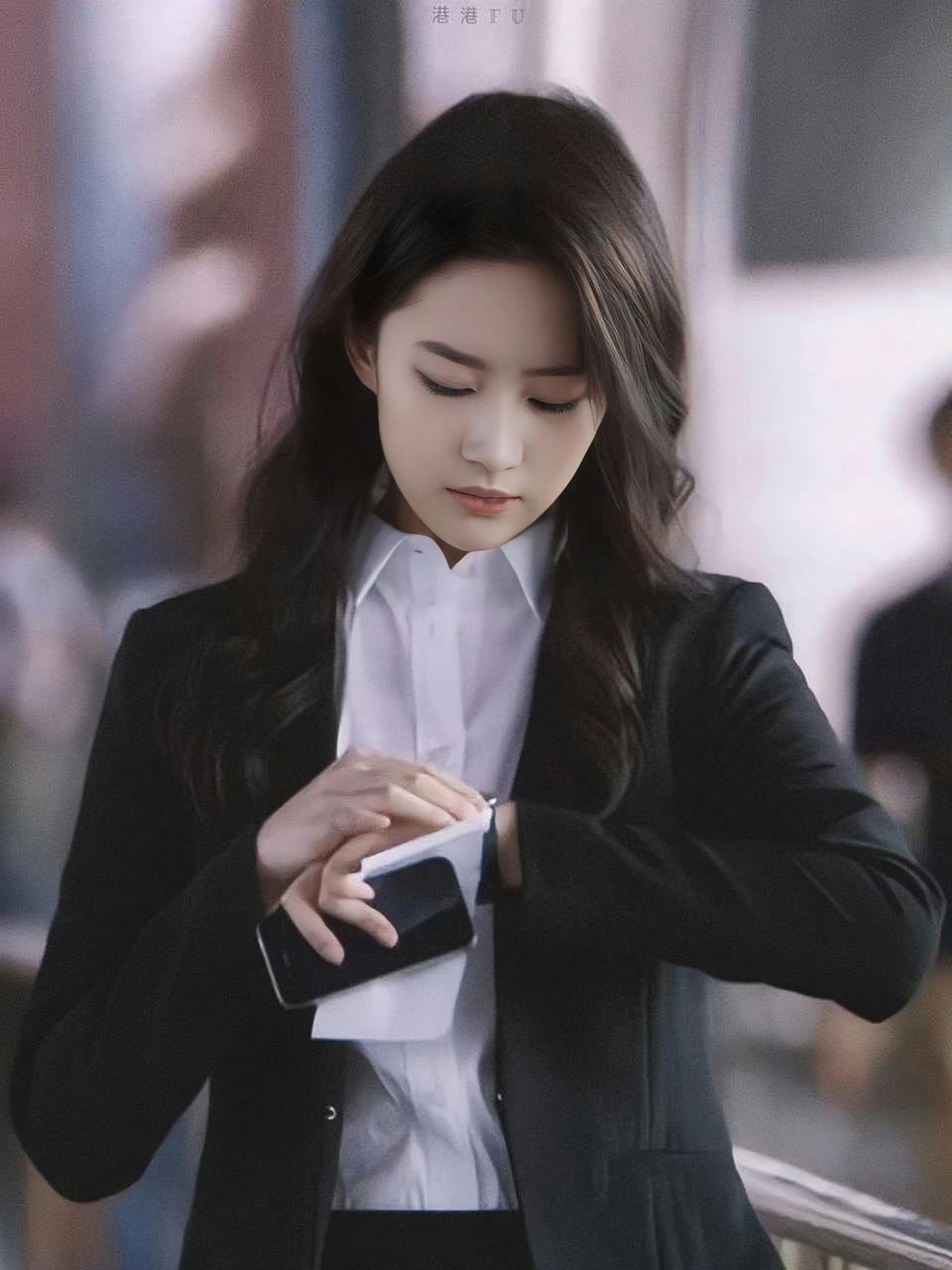 刘亦菲OL风壁纸,黑色妆造,冷酷迷人。