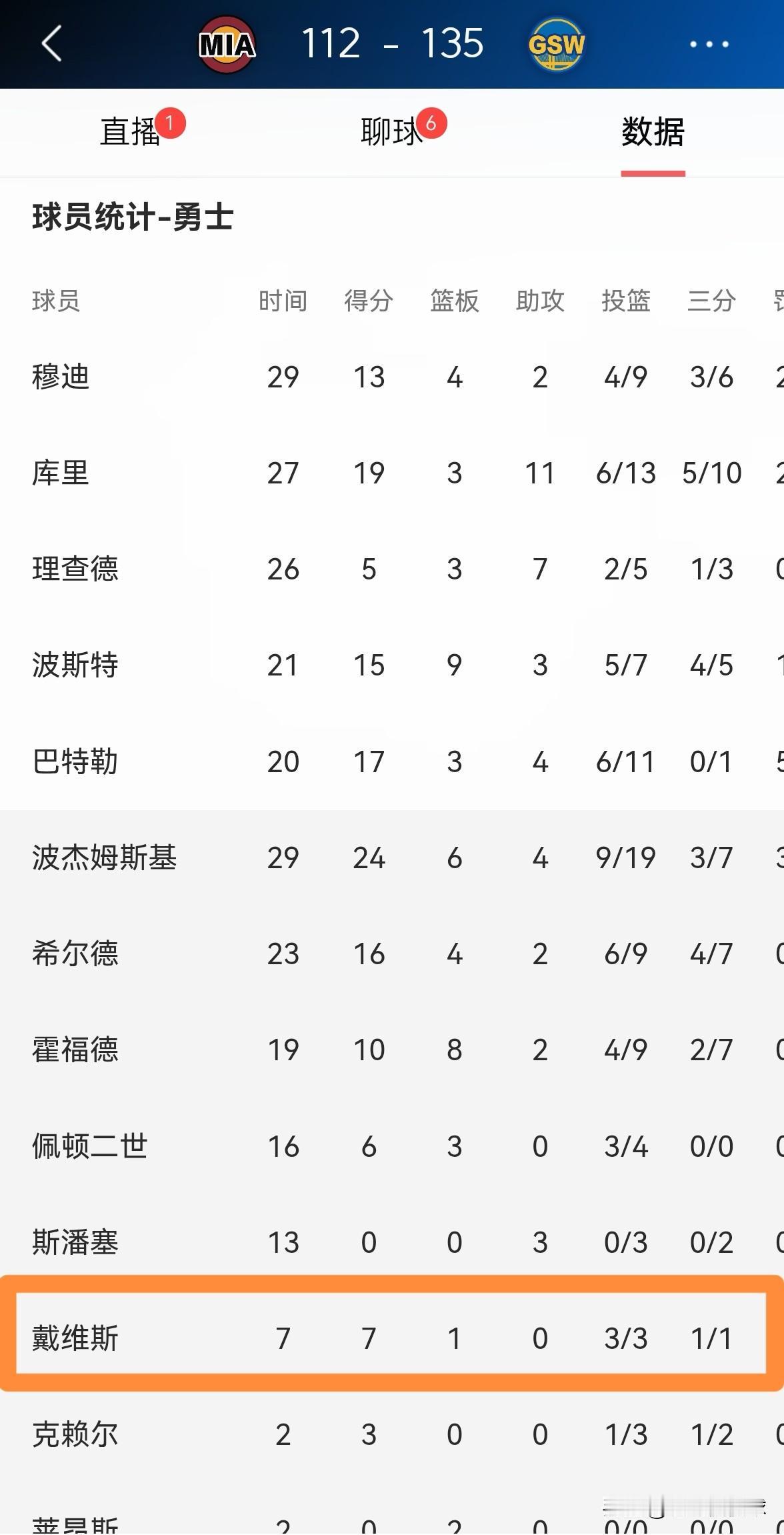 我强烈建议勇士主帅科尔重用TJD!在今天勇士主场以135:112大胜热火的比赛中,TJD在有限的出场时间里打出了非常高效的表现。全场比赛下来,TJD替补出战7分钟,投篮3中3,其中三分球1中1得到7分1篮板1抢断。 值得一提的是,在比赛的最后时刻,TJD在后场随手一扔投进了一记匪夷所思的超远三分,从而命中了个人职业生涯的首记三分球。试问像TJD这样出色的球员不值得被重用吗?