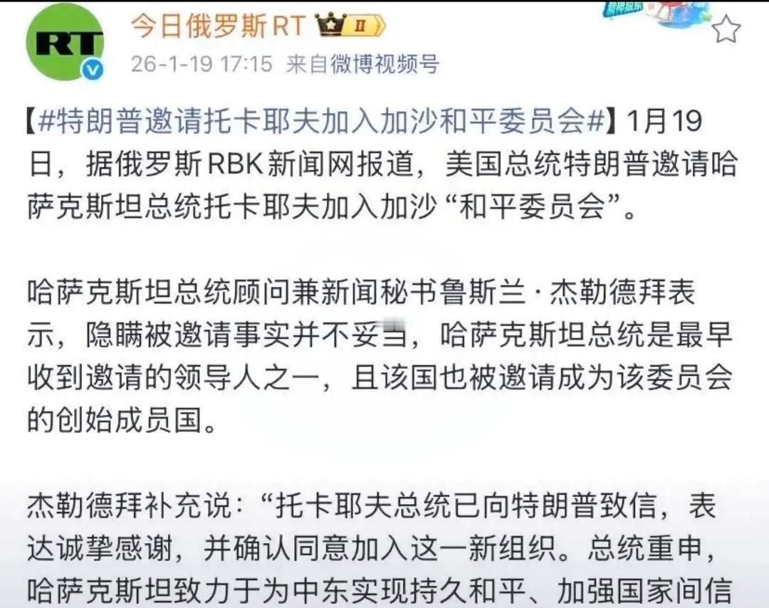 特朗普这一招“空手套白狼”,玩得是真溜。 直接给托卡耶夫打电话,拉哈萨克斯坦进什么“和平委员会”,还要当创始国。 名头听着挺响亮,但这门票据说得掏100亿美金。 这就很有意思了,名为搞和平,实则像是收“保护费”。 托卡耶夫当时答应得挺爽快,但这事儿憋在肚子里好久才敢往外说。 我看他是心里没底,怕隔壁那个“暴脾气”邻居翻脸。 这也不怪他,夹在大国中间过日子,不给美国面子不行,惹恼了莫斯科更不行。 这100亿花出去,说是买平安,其实就是在大佬眼皮子底下走钢丝。 这钱掏得心疼不心疼先不说,关键是这 “两头吃”的平衡术,稍不留神就得玩脱。