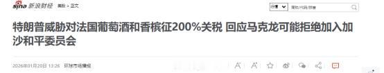 马克龙拒绝加入“新联合国”,特朗普:给法国加200%关税   建议美国总统特朗普,改名叫“美利坚万税爷”。进入2026年之后,特朗普谈到加关税的次数越来越频繁,针对的国家也越来越多。前几天,他刚对派兵去格陵兰岛的几个欧洲国家加过一次关税,现在,法国又挨了一招“回马枪”。 据央视新闻报道,特朗普突然宣布,将对法国葡萄酒和香槟加征200%的关税。因为马克龙不识抬举,胆敢拒绝美国的邀请。   特朗普自己都说,只要加了这200%的关税,马克龙就会乖乖加入,还嘴硬说“他并非必须加入”,这话里的威胁意味,藏都藏不住。   这已经不是特朗普2026年第一次拿关税说事了。就在1月17日,他还在自己的社交平台上发文,宣布从2月1日起,对丹麦、挪威、瑞典、法国、德国、英国、荷兰、芬兰这八个欧洲国家的所有输美商品,一律加征10%的关税;到了6月1日,税率还会涨到25%。   理由更离谱,就是因为这些国家反对美国“全面、彻底购买格陵兰岛”,特朗普放话,关税会一直加,直到他们同意为止。   格陵兰岛是丹麦的自治领地,跟美国八竿子打不着,特朗普却一门心思要弄到手,甚至在采访时被问会不会用武力夺取,都只说“无可奉告”,态度蛮横到了极点。   欧洲国家自然不答应,挪威、瑞典等国还派兵去格陵兰岛,参加丹麦组织的军事演习,本来是为了维护北极地区的安全,结果反倒被特朗普当成了找茬的理由,直接抡起了关税大棒。   法国本来就因为格陵兰岛的事被牵连,刚挨了10%的关税威胁,现在又因为拒绝加入美国的“和平委员会”,被单独追加200%的葡萄酒和香槟关税,等于被特朗普连打两拳。   要知道,美国是法国香槟的第一大出口市场,2024年的时候,法国香槟对美出口量占了总销量的10%,销售额更是占了14%;葡萄酒和烈酒对美出口也很关键,2024年葡萄酒出口额就有24亿欧元,烈酒15亿欧元,不少法国酒商的营收都靠美国市场撑着。   加征200%的关税,对法国酒行业来说就是灭顶之灾。一瓶原本在美国卖30美元的法国干邑,加税后可能要涨到60美元以上,美国进口商和消费者肯定不会买账,订单只会大幅减少。   法国葡萄酒与烈性酒出口商联合会早就算过账,关税提高会让行业在美国市场的销售额减少四分之一,损失高达10亿欧元,还会影响到60万个直接或间接的就业岗位。   现在法国葡萄种植者本来就不好过,受气候影响产量不稳,还计划铲除3万公顷葡萄园减少供给,特朗普这一下,无疑是雪上加霜。   特朗普之所以敢这么肆无忌惮地对盟友下狠手,就是觉得欧洲国家离不开美国,尤其是在乌克兰危机还没解决的情况下,欧洲得靠美国和北约的保护,只能忍气吞声。   可这次他想错了,欧洲国家已经不再一味退让。马克龙早就表态,特朗普的关税威胁是“不可接受的”,必要时会请求欧盟启动“反胁迫工具”。   这个“反胁迫工具”是欧盟2023年通过的法规,被称为“经济核武器”,一旦启动,欧盟可以直接对美国输欧商品加征惩罚性关税、限制美国企业进入欧盟市场,甚至实施金融制裁,之前从来没使用过,这次欧洲是真的被惹火了。   除了法国,丹麦、挪威等八个被加关税的国家也发表了联合声明,谴责美国破坏大西洋关系,要团结起来应对。欧洲议会的议员们也明确表示,会搁置之前和美国达成的贸易协议,不会让美国得寸进尺。   就连美国国内,也有不少人反对特朗普的做法。民主党和共和党议员都站出来批评,说用关税威胁盟友,会损害美国的声誉和国际关系,把盟友推远,最后让美国变成“孤家寡人”。   有议员直言,这根本不是什么“交易的艺术”,就是纯粹的胁迫,还警告特朗普,用紧急授权对格陵兰岛动武的想法太过荒谬。   特朗普这“万税爷”的做派,本质上就是顺我者昌、逆我者亡,不管是盟友还是对手,只要不听他的,就用关税施压。可现在的欧洲已经不是以前那个只会妥协的欧洲了,法国不会因为关税威胁就放弃立场,欧盟也做好了反制准备。   这场关税风波最后只会两败俱伤,美国酒商和消费者要花更多钱买酒,法国酒行业遭受重创,而美国和欧洲的盟友关系,也会因为特朗普的霸道行径,变得越来越脆弱。   接下来就看2月1日美国会不会真的落地10%的关税,欧盟又会不会启动反胁迫工具。但可以肯定的是,特朗普靠关税横行霸道的日子,只会越来越不好过,毕竟谁也不会一直忍受被讹诈,盟友也不例外。