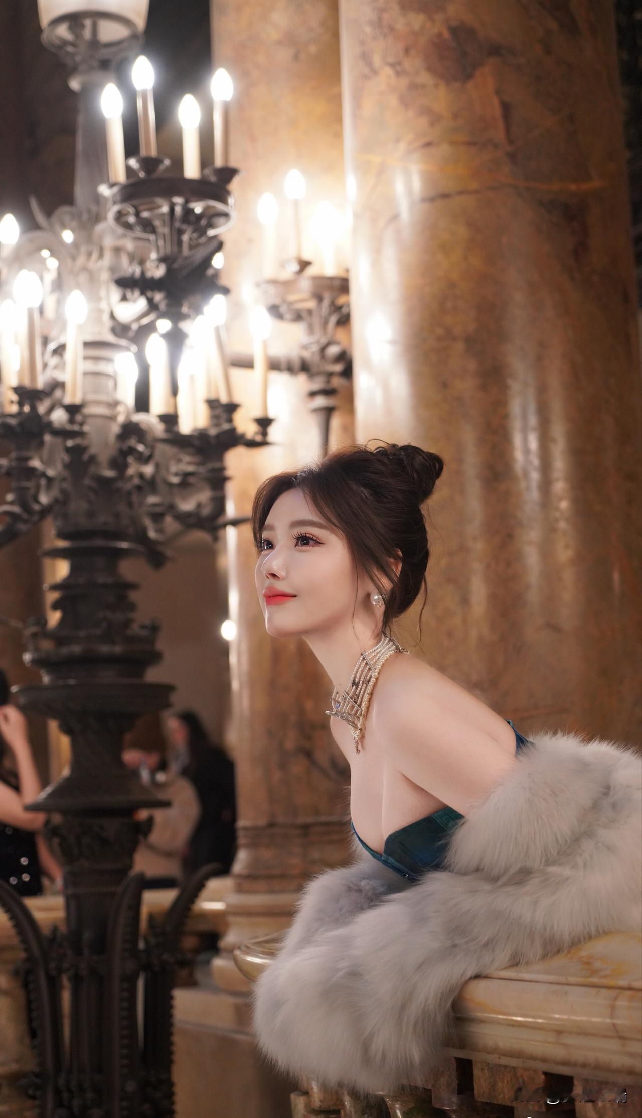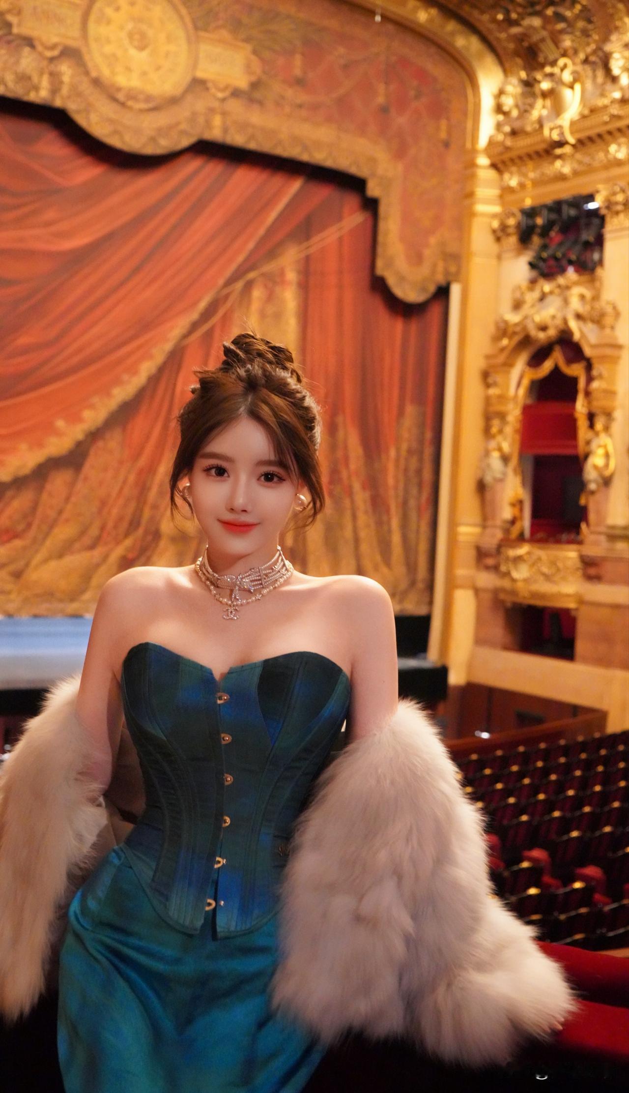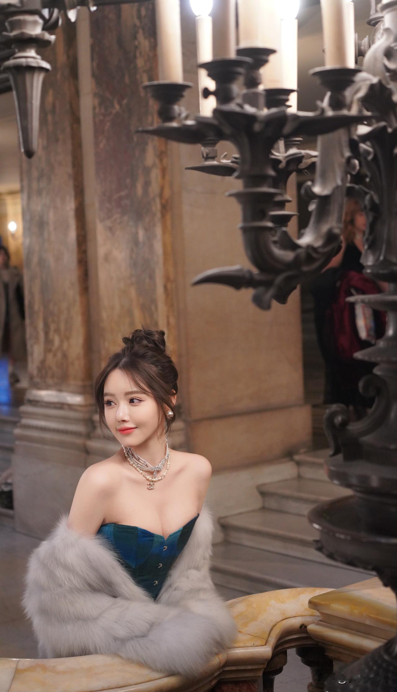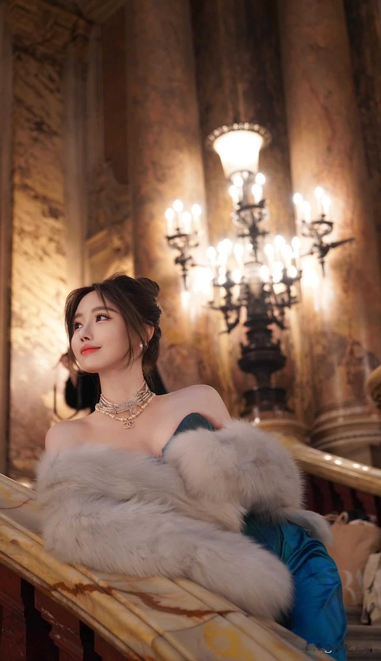 优雅复古风,蓝宝石礼服与奢华环境的完美搭配,尽显高贵气质。