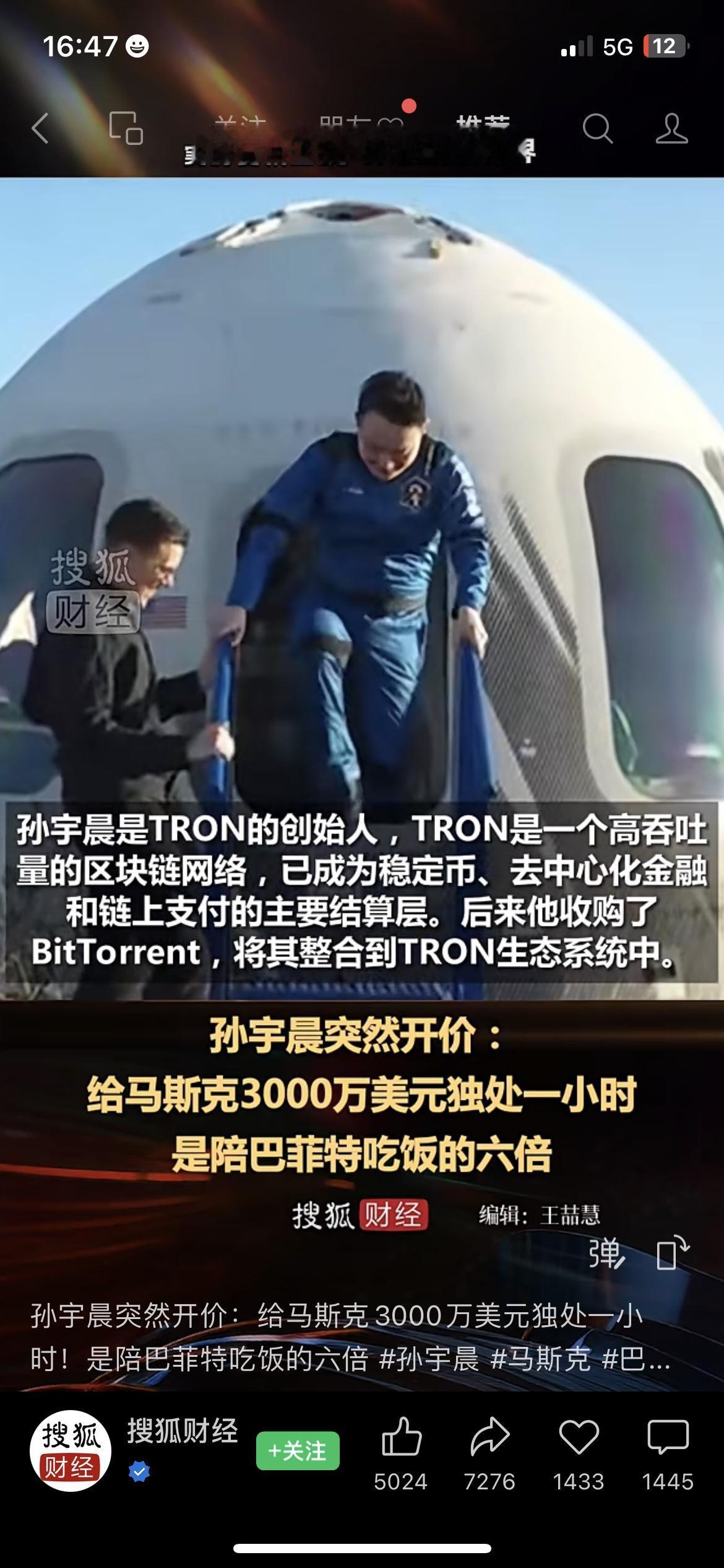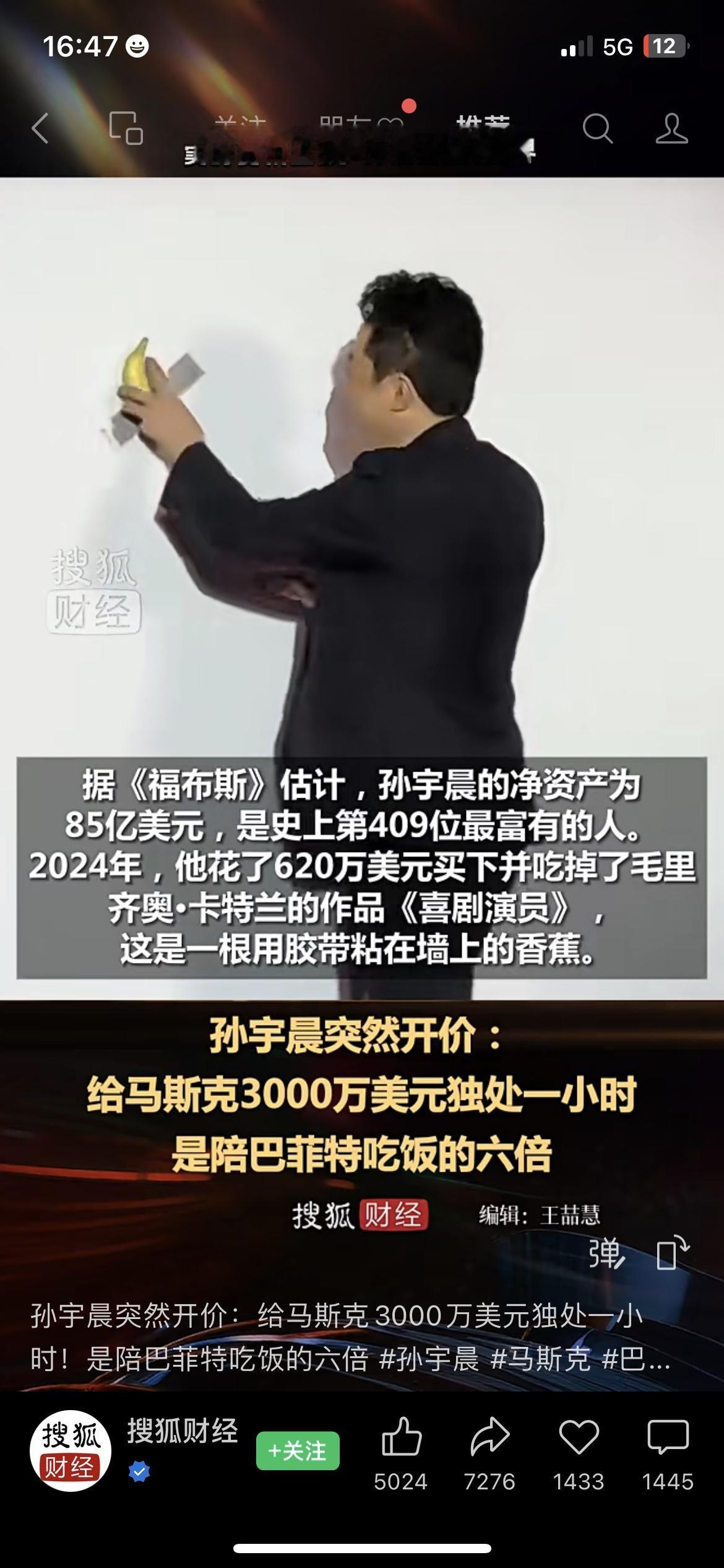 疯了!3000万买马斯克1小时聊天 孙宇晨又整活!砸3000万就为跟马斯克唠一小时,是当年巴菲特午餐的6.5倍!去年他花620万买根胶带粘的香蕉当场啃了,这哪是社交,纯纯烧钱买流量,这钱够咱普通人躺平一辈子了! 富豪砸的不是钱,是让全网盯着他的流量! 你觉得孙宇晨这波是血赚,还是纯纯烧钱炒作? 孙宇晨 马斯克 天价社交