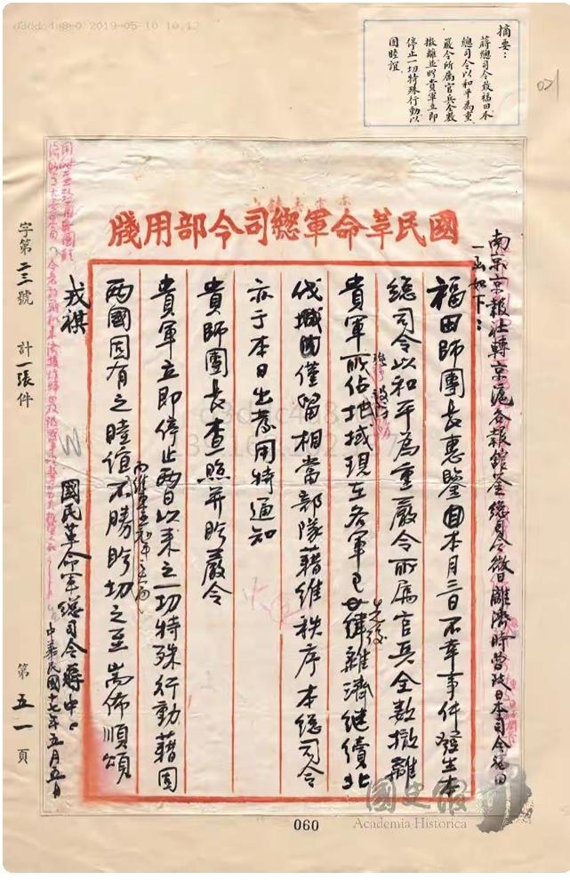 最近,又有人对张学良在西安事变以及丢失东北的事情上,大放厥词(图一), 关于这两件事,历史早有定论, 西安事变,张学良促成了抗日统一战线,有功,有大功, 东北不抵抗,张学良有罪,但确实是奉了蒋介石的命令, 有人说,张学良90多岁的时候,亲口说,东北不抵抗,是他自己下的命令,和蒋无关, 但是2019年,台湾蔡英文政府,公布了大量蒋介石的手令、档案、日记,全是原件,证明了下达不抵抗命令、卑躬屈膝的罪人,就是蒋介石(图二到图八), 图二,是九一八事变第四天,命令烟台刘珍年部,日军如登陆山东,绝对不能抵抗, 图三,蒋给制造五三惨案的日军司令的信,说自己马上撤退,绝不会危害日军, 图四:给镇江部队下的命令,要求如日军登陆,中国军人应该给日本送给养和蔬菜, 图五:命令部下,对于东北抗日义勇军,绝不能支援, 图六:张学良求救,蒋命令置之不理,装没看见, 图七:给熊式辉的手令,对于共产党控制区,不仅要消灭共军,还要杀死普通民众,烧房子,然后赖到共产党头上,关于烧房子,还规定必须每一区至少烧三天, 图八:蒋亲自批准的《何梅协定》,规定解散抗日组织,严惩抗日行为,罢免说日本坏话的官员, 那些说张学良是最大罪人的,你们说说,张学良只是畏敌如虎,但至少没有下达过这些丧尽天良的命令, 确实,那封九一八之夜命令张学良不抵抗的电报,没有公布,那是因为密级太高,暂时仍属保密,但大量的文件都证明,不抵抗的命令有的是, 回到张学良晚年的言论,其实事情很简单,你是相信证据,还是相信口供? 在全国造两座跪像,这事,谁也别和蒋介石争。