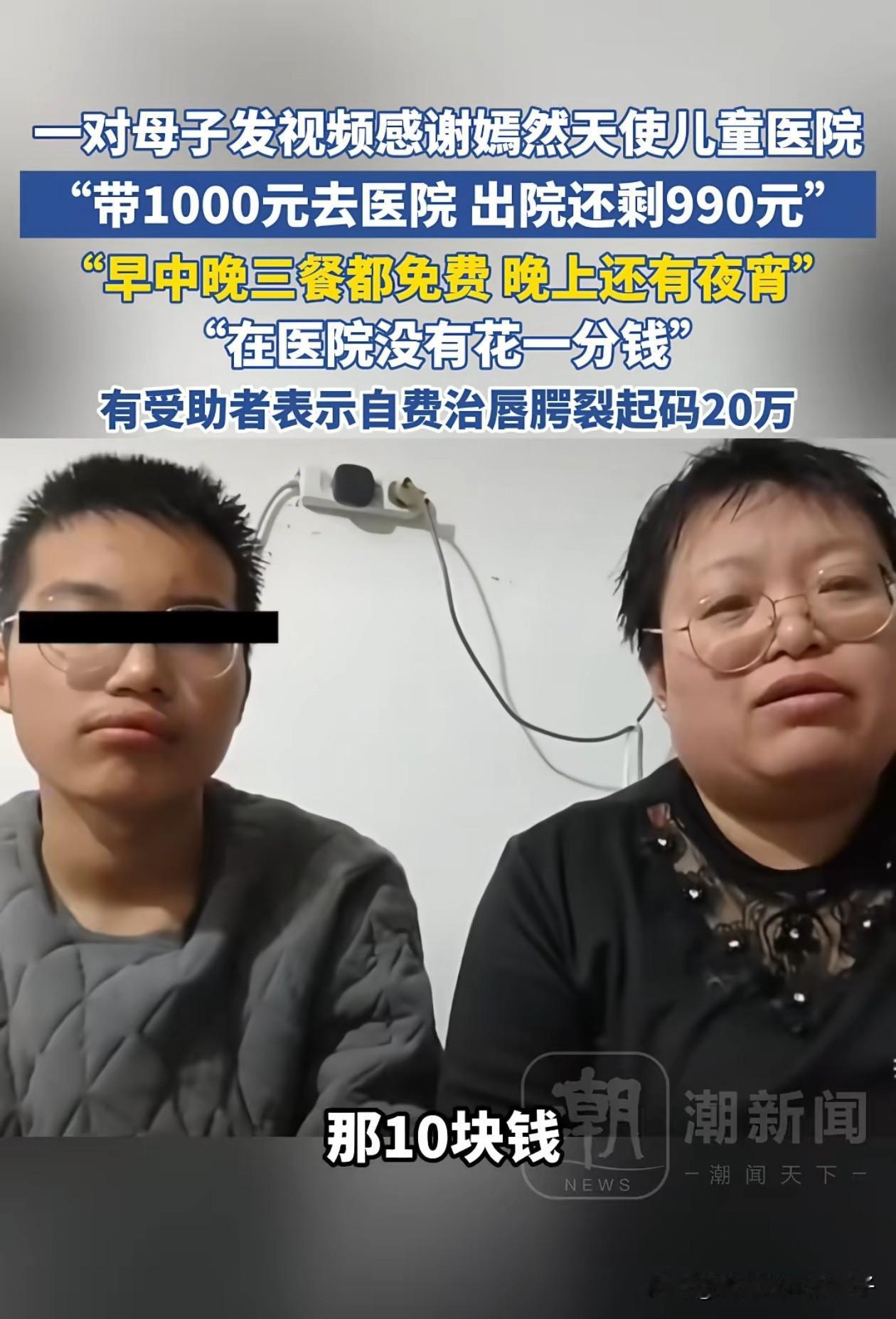 嫣然医院的患者出来发声了,孩子母亲说,孩子去做手术时,她带了1000元当生活费,但来到医院才发现,医院吃饭也不要钱,还提供宵夜,临走又给她们报销了来回的车费。 孩子出院时,她身上还剩下990元,只花了10元买水果,视频最后,孩子和母亲一起出镜,起身向李亚鹏鞠躬表示感谢! 看孩子和妈妈的穿衣打扮,以及背后房子的墙上还钉着排插,推测是农村自建房,所以他们家庭应该不富裕。 先天性唇裂手术自费得上万元,如果没有嫣然基金的资助,对这个家庭也是一笔不小的开销,也许得攒1年,才能攒够。 网友说,没有人愿意主动揭露伤疤,除非恩人有难,真的泪目了。 要知道李亚鹏不是只帮了这一个孩子,而是16年来,免费做了2万多例手术,真的是大爱。 希望李亚鹏先生和嫣然医院能挺过这次难关!