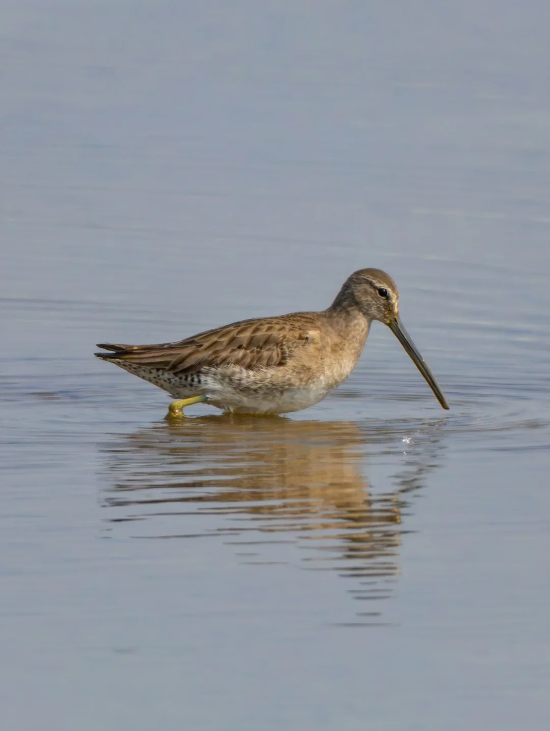 长嘴半蹼鹬,Long-billed Dowitcher,鸻形目丘鹬科半蹼鹬属。从东北亚到西北美洲,迁徙和越冬时主要在北美。长嘴半蹼鹬顾名思义,喙很长,非繁殖季全身灰褐色,腹部较淡,胸部与腹部颜色对比明显。