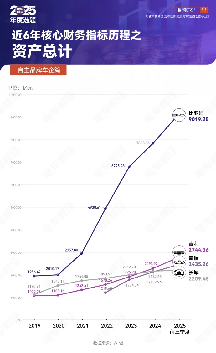 各家车企最新的资产发展大赏,也太有料了 比亚迪——MVP 电动化时代最大赢家没有之一!资产曲线六年狂飙🚀 凭一己之力吃透行业红利 赛力斯——逆天改命 这条曲线陡得堪比过山车,抱紧华为大腿后身家暴涨,从边缘玩家直接杀入主赛道,堪称最成功“跨界联名” 理想——人间清醒 别人疯狂加杠杆时它默默降负债📉 新势力——智能收割机[火R] 零跑直线拉升,极氪合并领克资源重组,小鹏横盘后再度起飞…智能化红利的最大受益者,必须是新势力 自主品牌——两条腿走路 吉利、奇瑞、长城这些自主品牌妥妥的油车电车两条腿走路 国企央企选手——稳字当头[点赞R] 国企央企的资产走势,主要的特点就是:稳健!