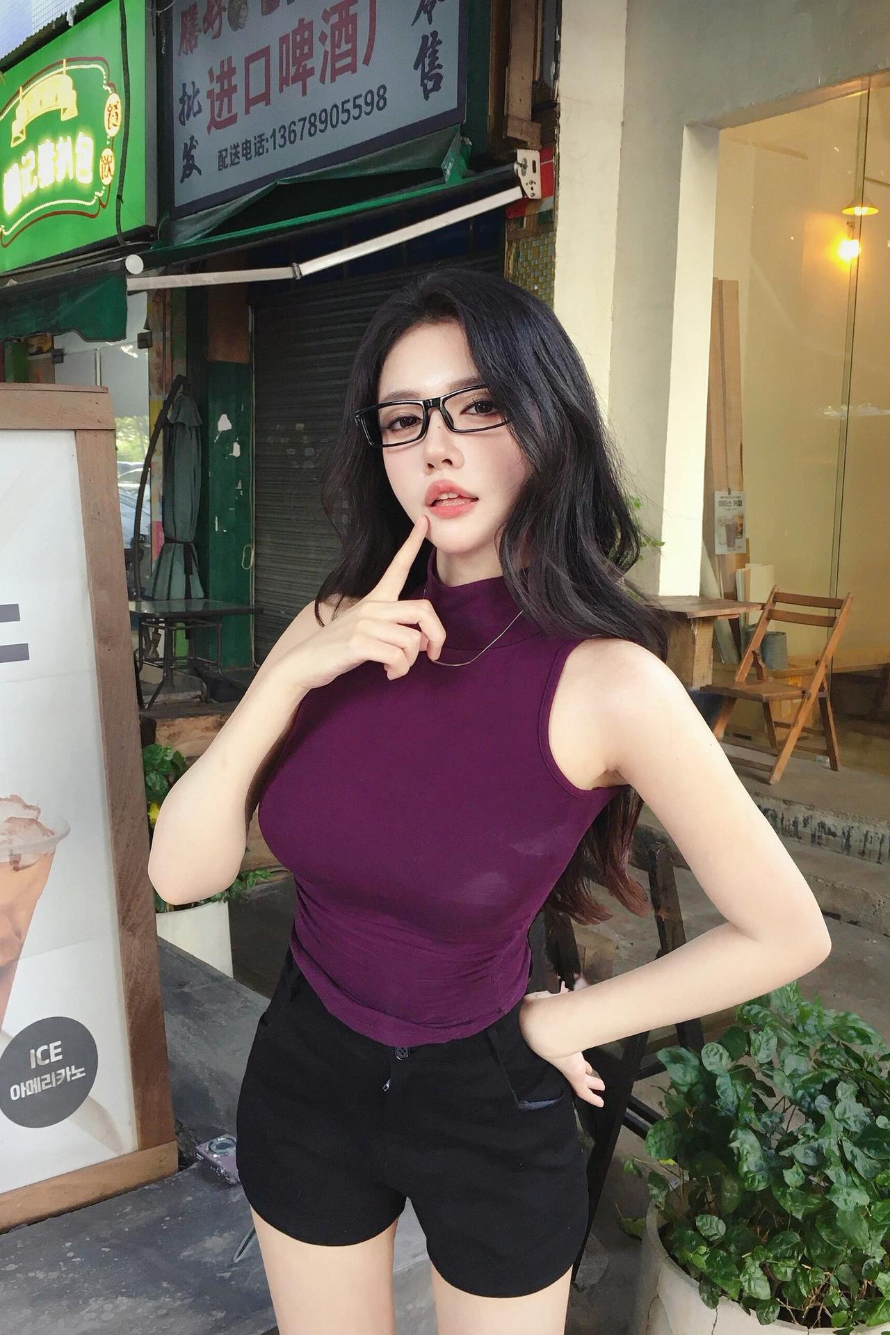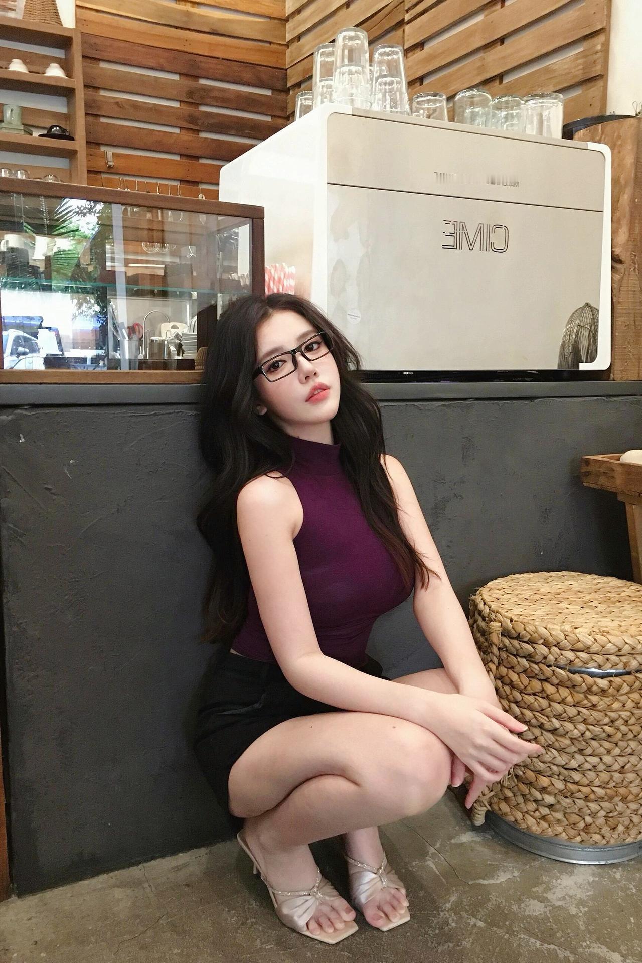 《巷隅闲意》 深紫裁成贴体衣,晴光穿巷惹风微。 轻扶镜架凝眸立,漫倚吧台带笑归。 市井檐头招幌动,玻璃柜里茗烟飞。 人间烟火寻常处,一晌清欢自忘机。