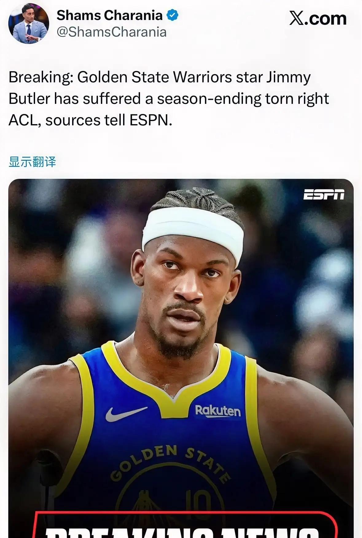 多家媒体报道巴特勒遭遇十字韧带撕裂,赛季报销!接下来的勇士就有想象空间了。有专家预测,巴特勒这伤回复起来需要10~12个月,巴特勒的合同剩下一年半,这样看来,等到巴特勒伤养好时,合同所剩时间也只有半年,留与不留,也给勇士管理层带来了新课题。 还有现在闹得沸沸扬扬的库明加,巴特勒打不了,按说可以有库明加顶上,可是库明加和勇士之间的是是非非已久,也不是说一定没有合作的可能性,毕竟NBA联盟首先是生意,只要能满足双方的利益诉求,一切皆有可能!(个人观点,不喜勿喷,谢谢!)
