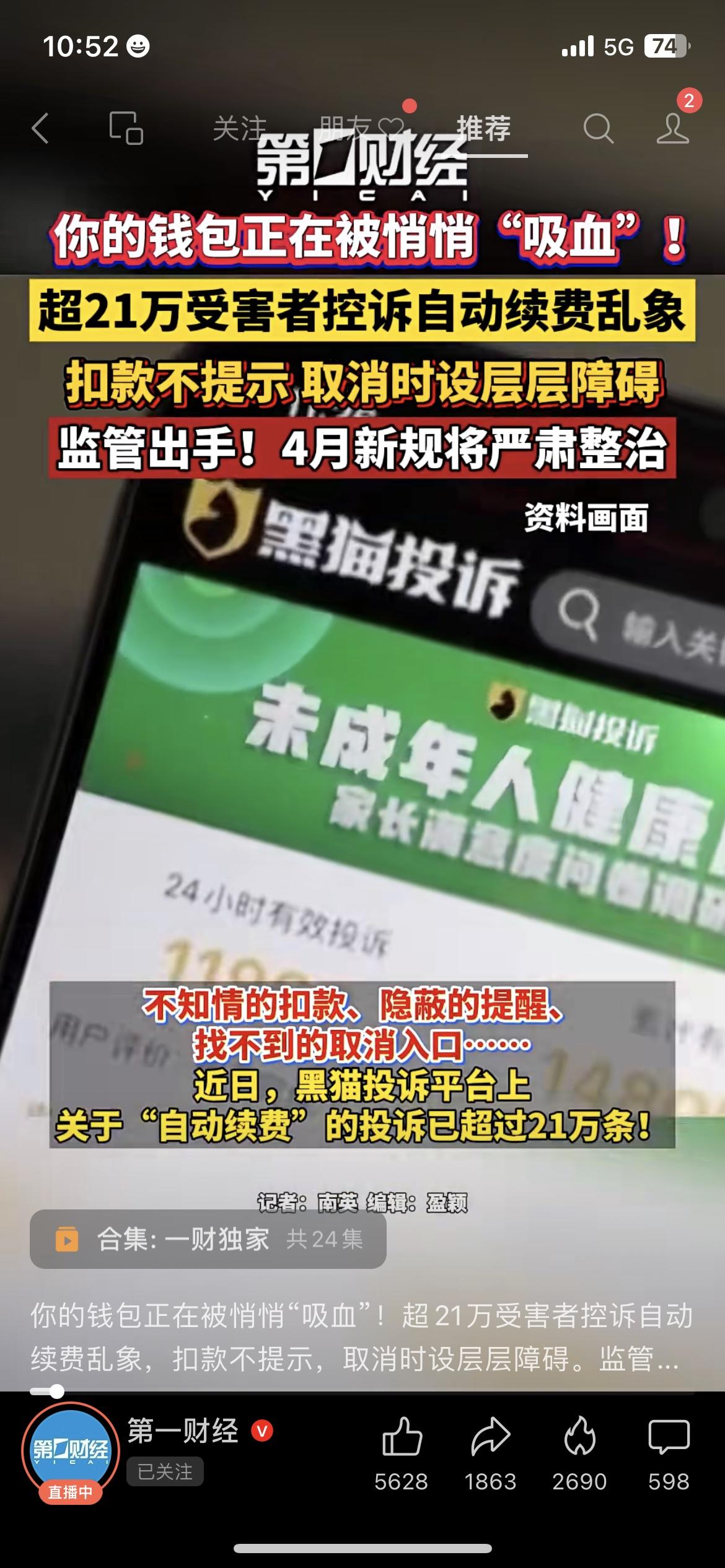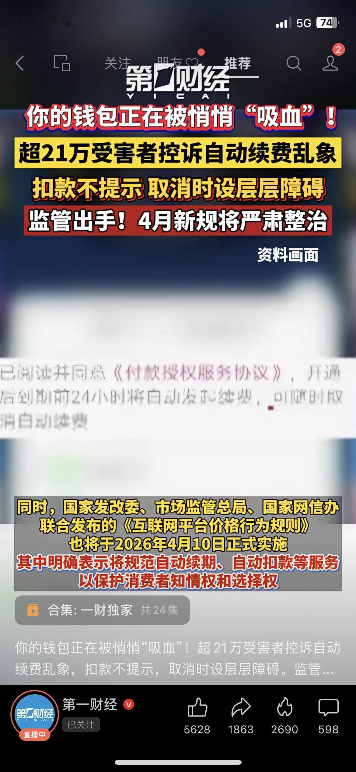 你的钱包在被吸血!自动续费坑惨21万人 家人们注意!21万多人都被自动续费坑惨了!扣款悄咪咪,取消比登天还难!我妈去年被某视频平台自动扣费半年才发现,找客服取消还被推来推去。好在4月新规要严打,以后套路少了! 免费的才是最贵的,自动续费就是隐形吸血。 你被自动续费坑过吗?是自认倒霉,还是直接维权? 自动续费 民生热点