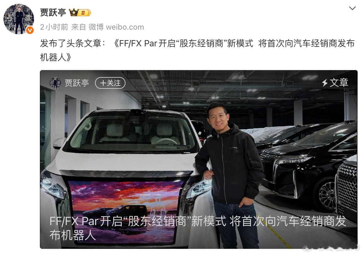 贾总嫌传统卖车模式不行,嫌直营模式太重又想出了一个天才方案—卖机器人给卖车的人,赋能经销商 还回家吃饭不?FF大 v 聊车