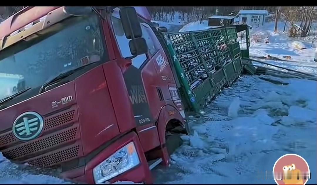 我说不管开,不管开,你非要开,你说咋弄,咋弄吧? 这一看就是东北的司机干的活,不是吉林就是黑龙江,重车从冰面上走,胆子也太大了,空车还差不多,宁愿走远,也不能走险。 这下完了,把大厢里东西先卸来,用履带车往后拽,用吊车都没地方停车,吊车不可能跑江面上吊大车这死冷的天在江边上,人冻的都受不了。 人平安没事就好,以后再也不要这样走了。
