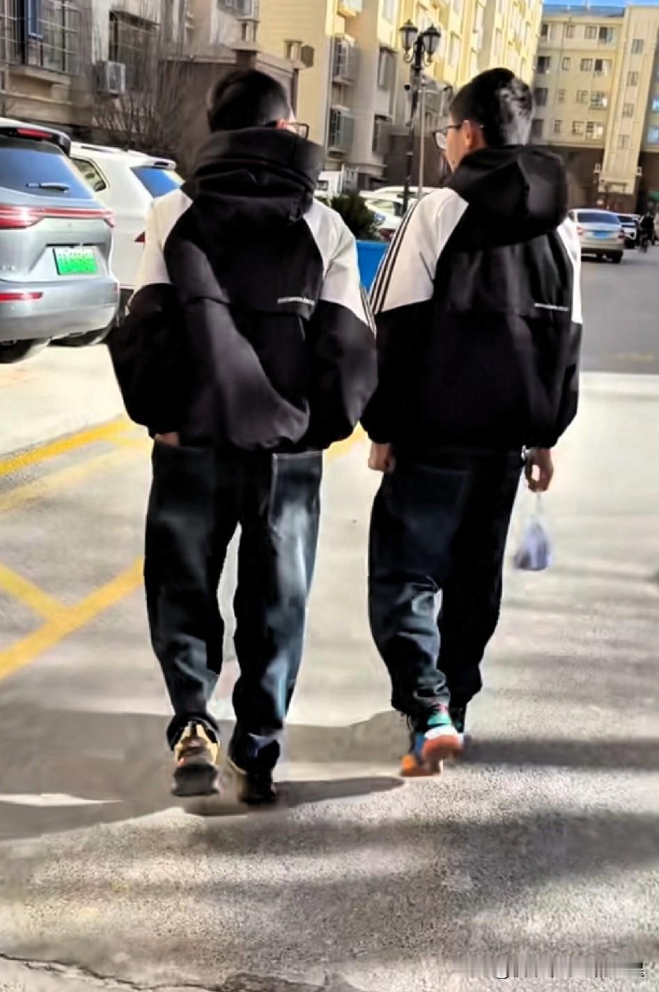这哪是双胞胎,明明是复制粘贴! 远远就看见这俩背影,简直是一个模子刻出来的同款校服、同款书包,连走路的姿势都分毫不差。 不知道的还以为是手机开了镜像模式,这大概就是双胞胎独有的默契吧。 阳光把他们的影子拉得老长,一晃神仿佛看到了自己和发小一起疯跑的青春。原来最让人羡慕的,就是有个人和你穿一样的衣服,走一样的路,一起把日子过得热热闹闹。