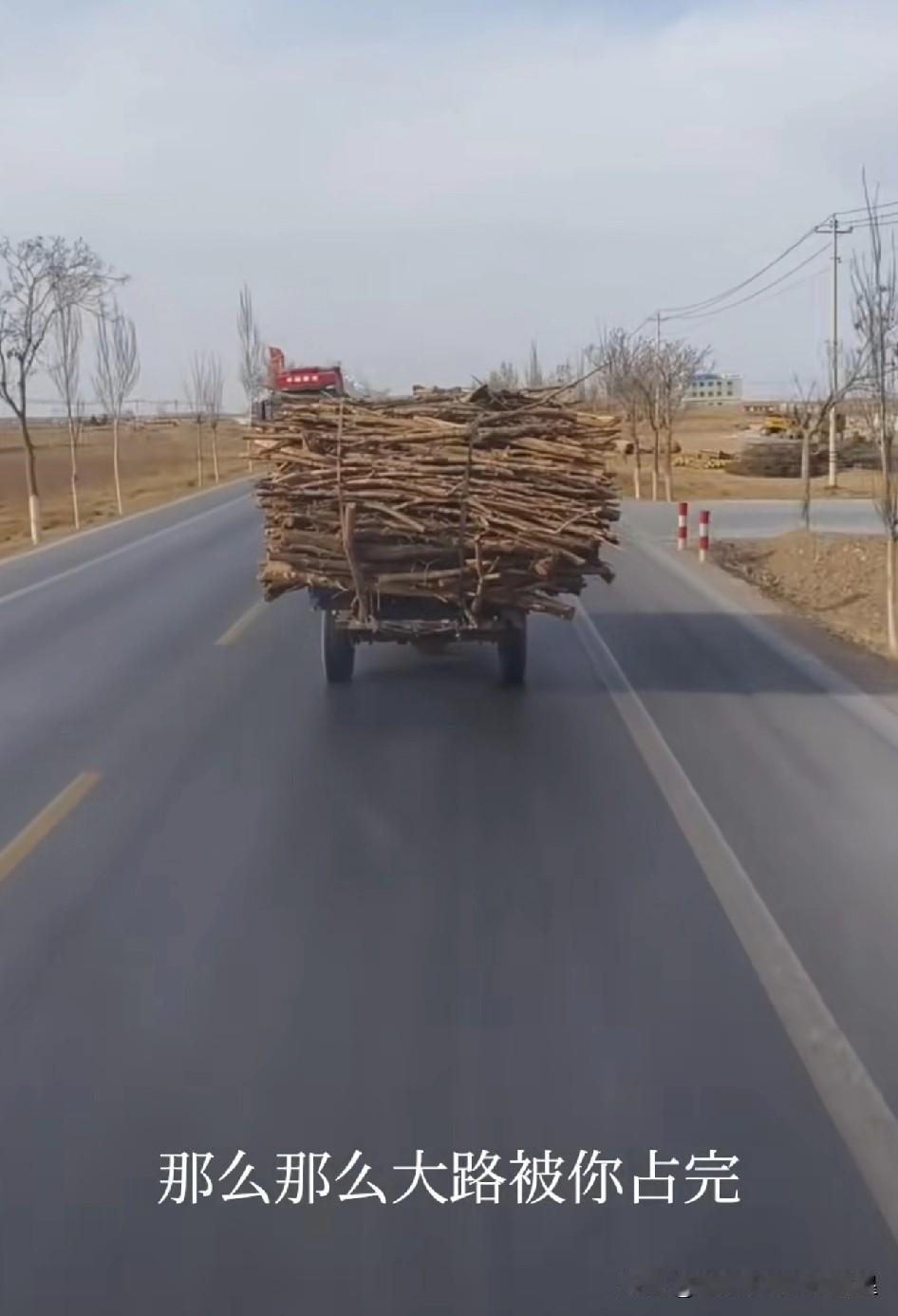 这才是真正的“路霸”! 家人们谁懂啊!在乡下公路上偶遇一辆“巨无霸”三轮车,这柴火堆得比人还高,几乎占满了整个车道。 我跟在后面想超车都没机会,只能哭笑不得地跟车。咱农村人拉柴过冬我能理解,但这么占着路,对自己和别人都太不安全了。 这场景真是又好笑又让人捏把汗,咱出门在外,安全才是第一位啊!