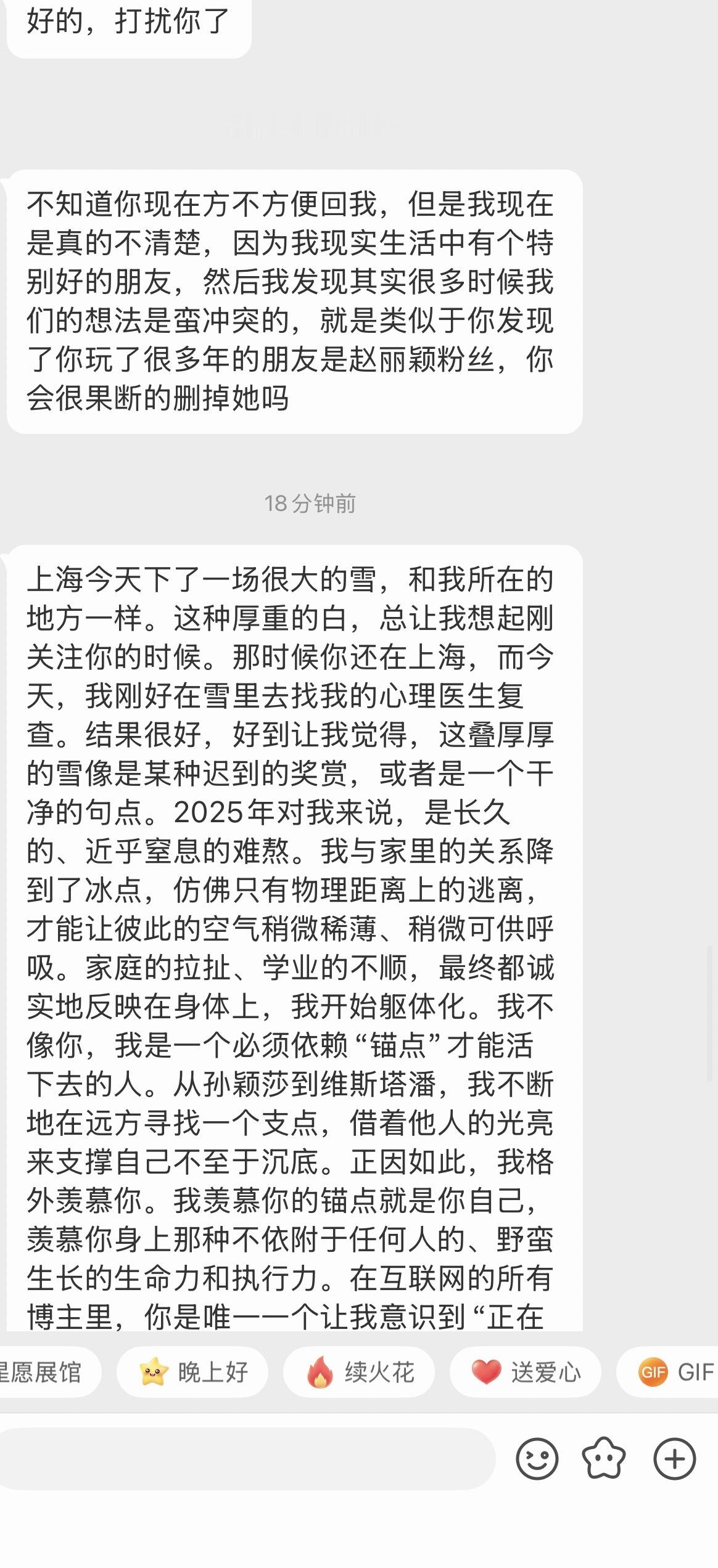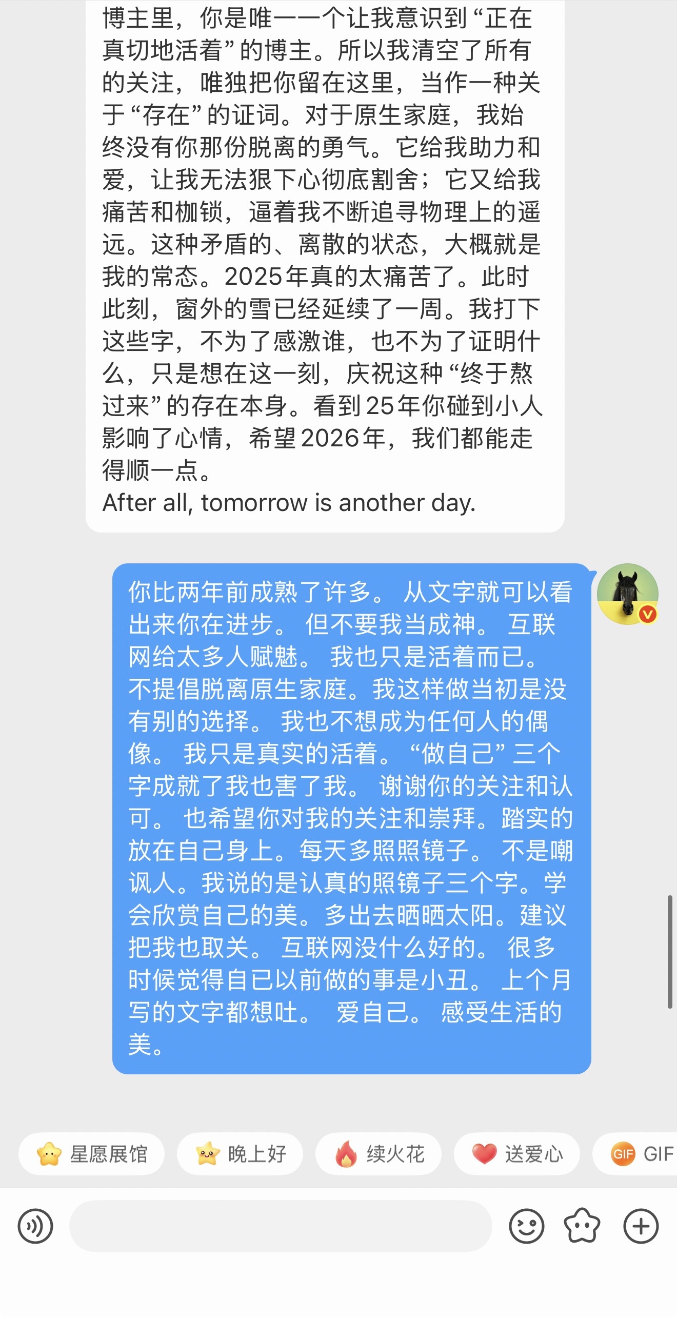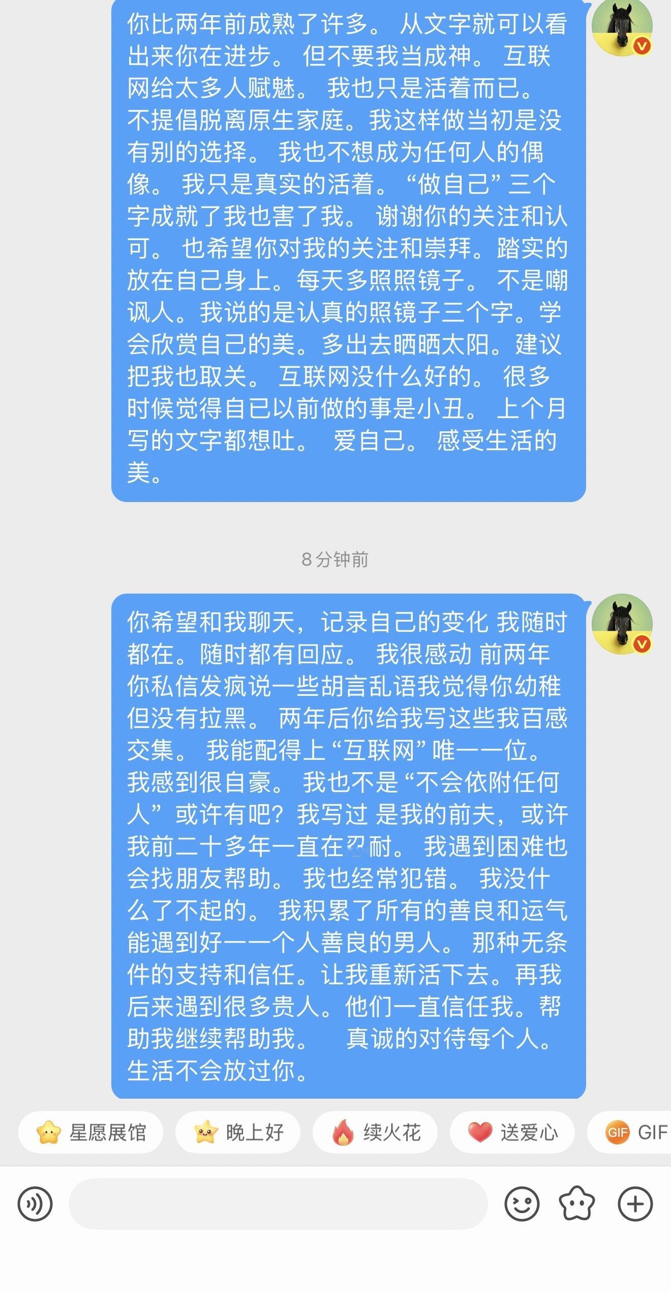 “等你长大成人之后你再给我发私信” 让我感觉这尽然是这么有含金量的话。 真的来了。 两年后。真的长大了。真的百感交集。 借用前段时间粉丝写给我的一封信的一句话。 “风来就摇曳。雨落就扎根” 我也和他分享了玉龙雪山脚下牵马小男孩的故事。