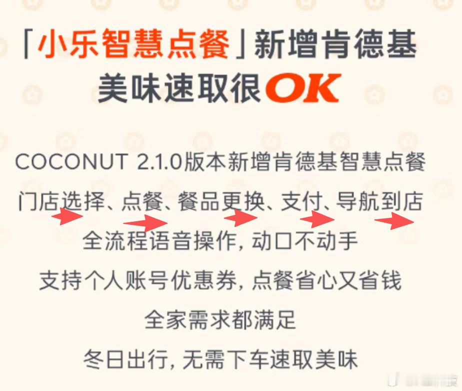 嚯~乐道最近成交际花了先是上了浙江电视台跨年晚会、接着是赞助申花足球俱乐部,这次直接和KFC组成「OK」CP组合,这波联名让在车上解决一顿饭变得简单和满足。之前开车时点外卖,手忙脚乱拿手机真的危险。现在上车动动嘴跟小乐说一声,点餐、算好取餐时间、甚至导航路线都一气呵成。开到肯德基正好取上,炸鸡薯条还是热乎的——冬天里这种无缝衔接的暖意,才是真“科技服务生活”。乐道车机不断向更智能进化,这次把全家人的玩和吃都顾全了,车主还可以领买一送一券,新年好滋味,全家都「OK」CP,这合作我啃了