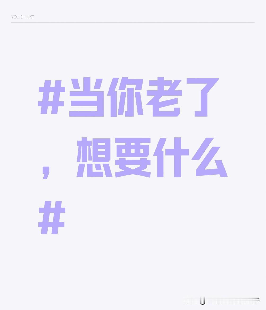当你老了,想要什么?我想,我不希望老了还在为生活奔波。现在的我们每天忙忙碌碌,工作压力大,家庭琐事多,常常不知道自己在追什么。 老了之后,我想要有个安静的小院,种些花花草草,养只慵懒的猫。不用再为业绩发愁,不用再处理复杂的人际关系。能和老友坐在摇椅上,回忆年轻时的趣事,聊聊过去的梦想。也希望家人能常伴左右,一起吃顿热乎的饭,感受亲情的温暖。不再错过生活里的小确幸,把年轻时藏在抽屉里的梦想,一件一件实现。