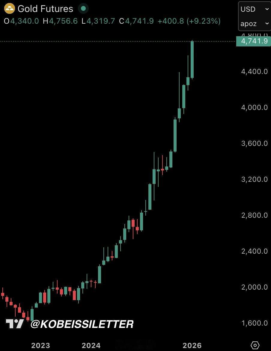黄金期货价格历史上首次正式突破每盎司 4750 美元大关,本月已再上涨 10%。 黄金市值在12个月内增加了15万亿美元。老常政经黄金贵金属常涤非观点