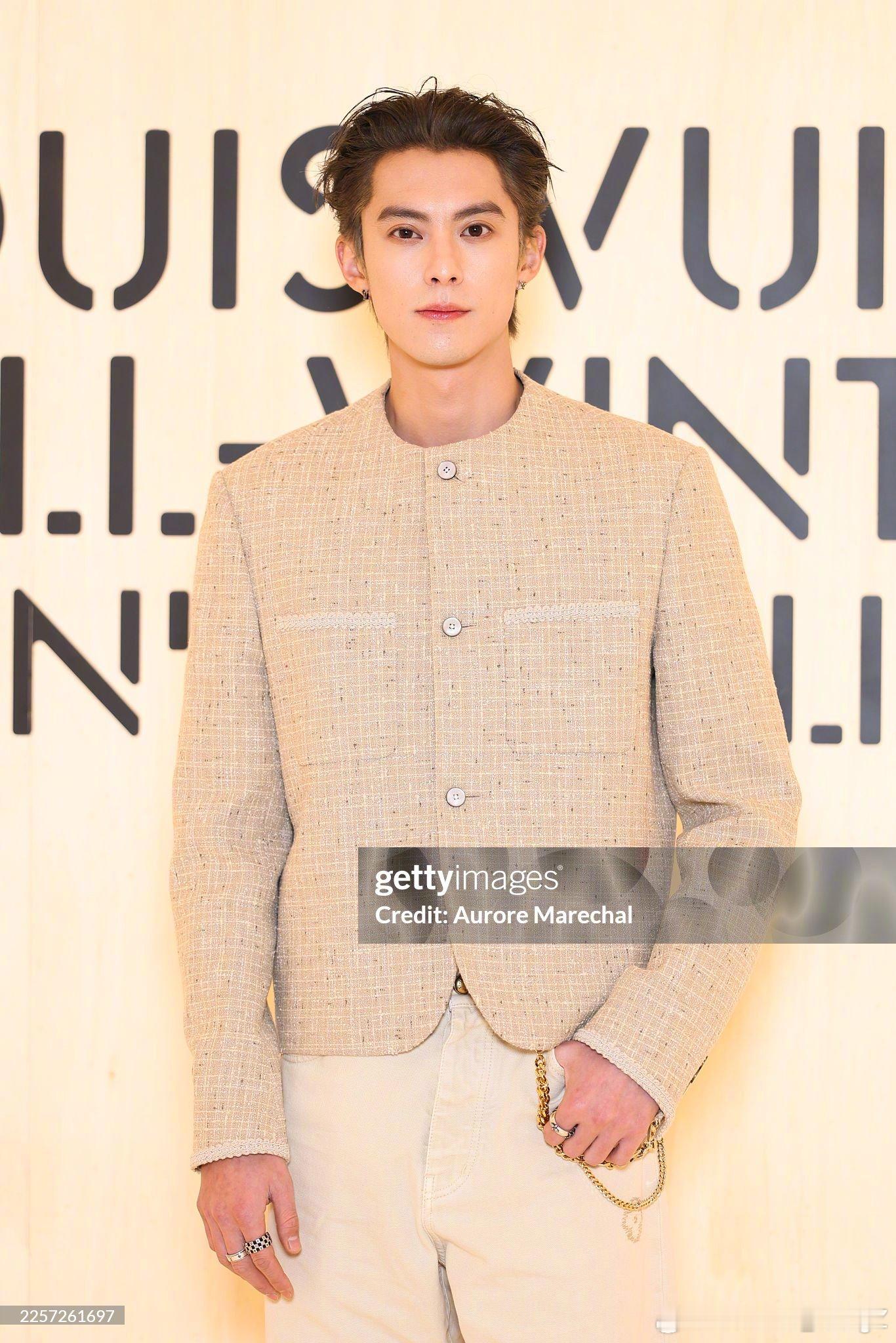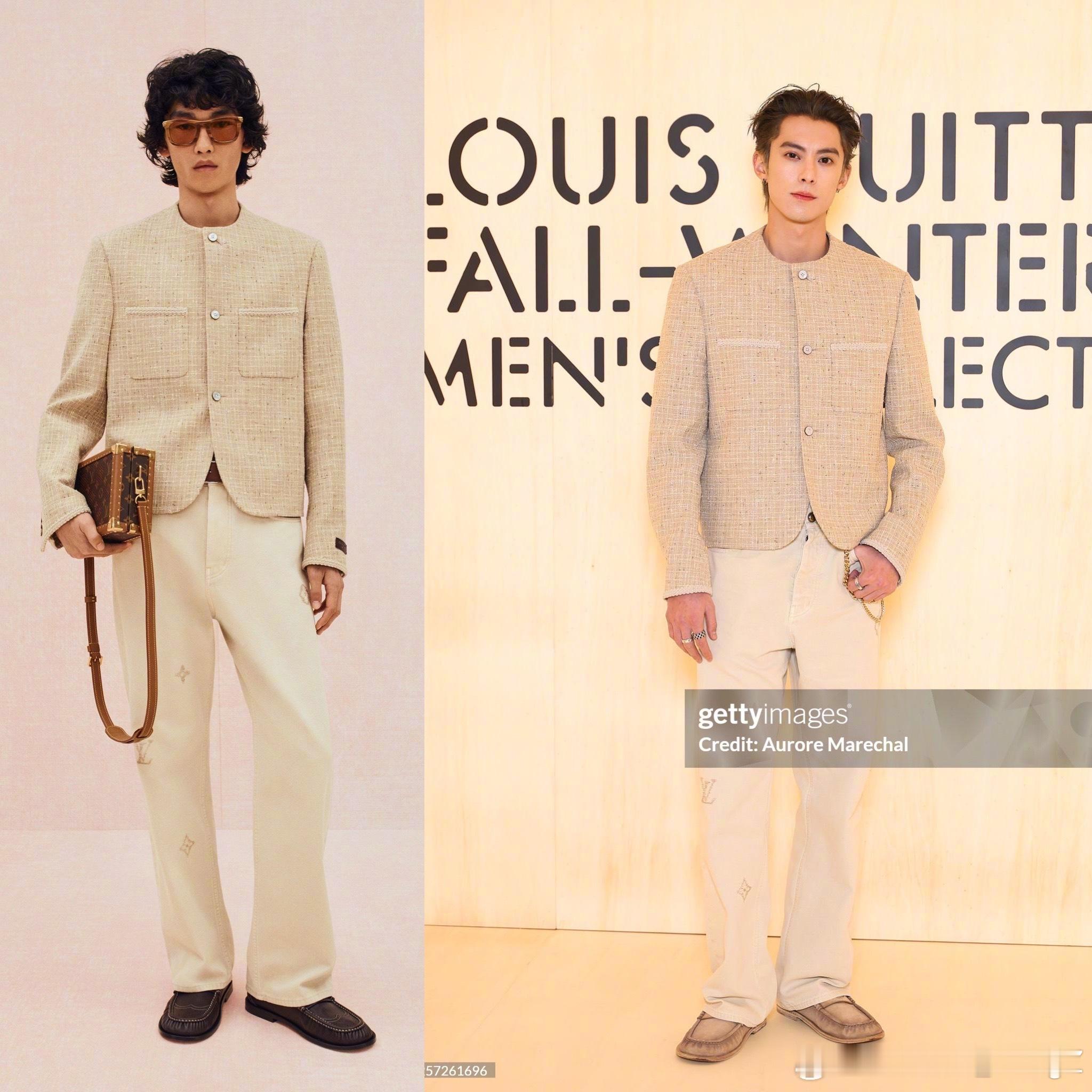 王鹤棣|路易威登2026秋冬男装秀看秀造型出图,身穿2026早秋男士系列米色套装