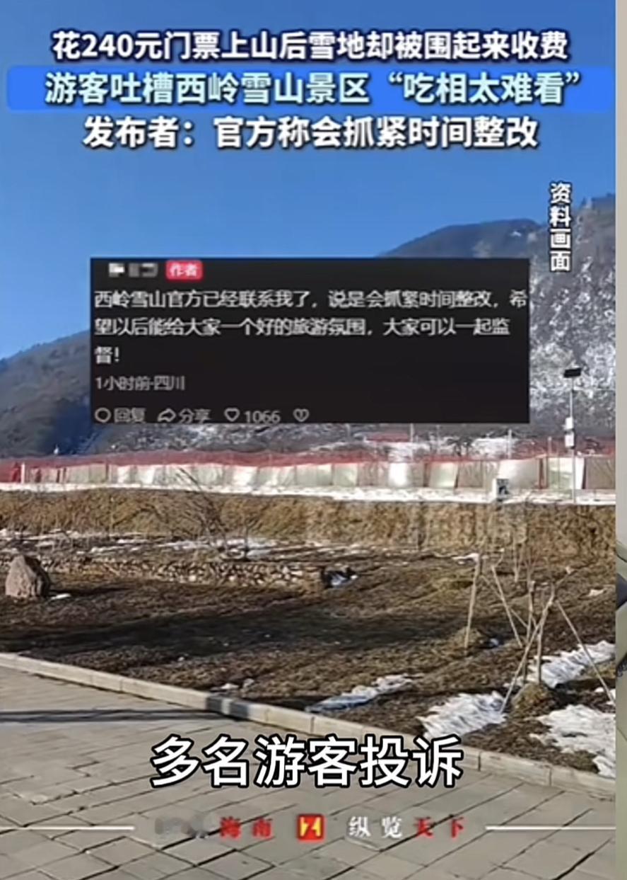 西岭雪山这次“围雪收费”可真是闹大了。有游客花240元套票登顶,结果发现有雪的地方都被围起来单独收费,单项收费几十元不等,连之前免费的雪区也装了护栏开始收费,这操作让人直呼离谱。 其实今年1月初,景区就因没醒目提示二次收费被质疑“隐性消费”,不少游客要求退票。好在景区反应还算快,1月20日就开始整改,取缔很多收费场地,开放免费玩雪区域。现在240元套票能游览各大景点,只有少量刺激性小项目收费,游客可按需选择。希望景区以后能多为游客考虑,别再整这些糟心事啦。 西岭雪景 西岭雪山天气 西岭雪徒步 西岭徒步 西岭欢乐谷 西岭雪山滑雪季 远处的西岭雪山