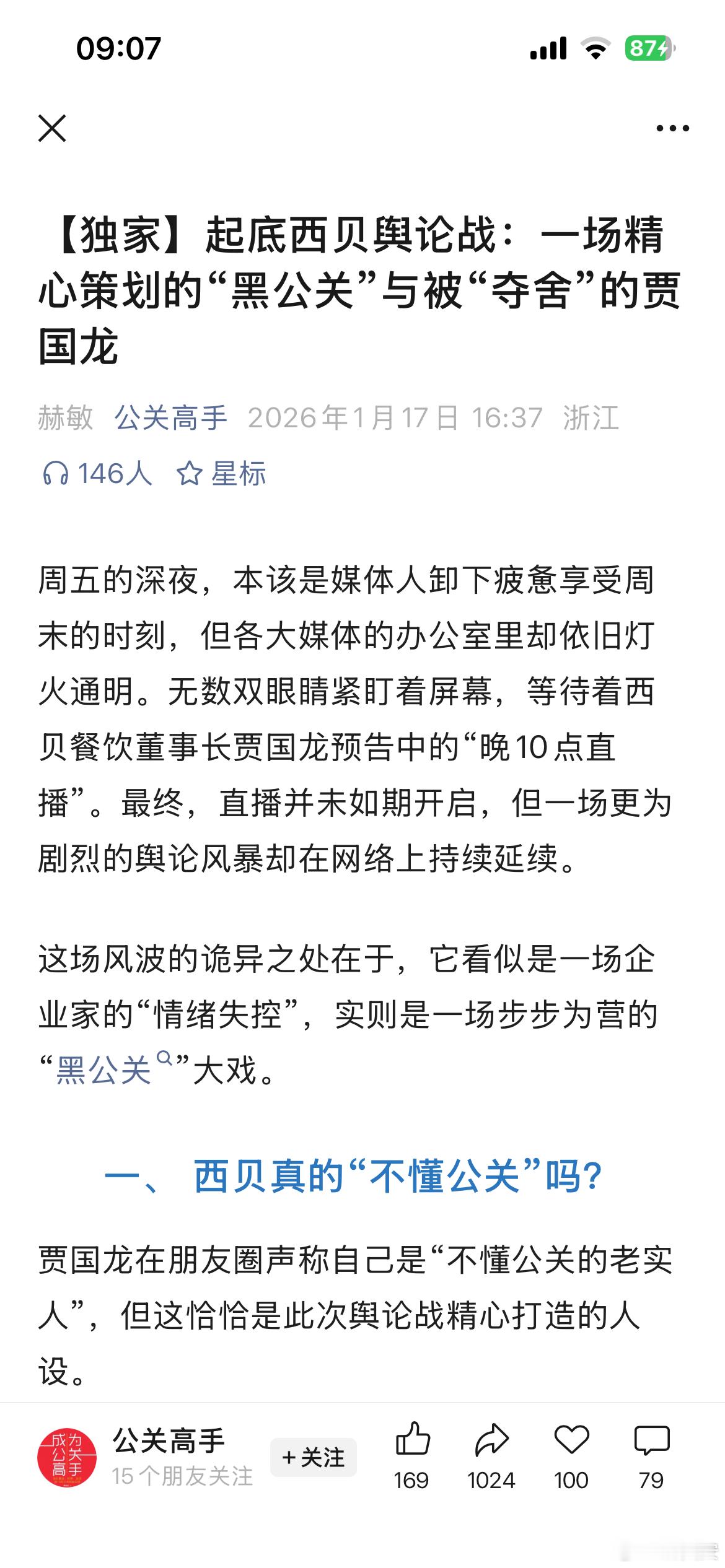 西贝黑公关事件沸沸扬扬,多媒体群及相关文章称其有幕后“黑公关”,到底什么是黑公关?公关危机本身是一个正常业务,既符合市场需求,也是体制内诸多单位所必备的技能。而目前阶段,很多还采取一些低级手段,游走在灰色地带甚至严格说是违法的手段,反而排斥专业的危机公关,以为“有人趁机想收钱”,把相关费用去请教所谓的“专家”也大有人在。不知西贝这一次的幕后决策过程?或许等贾老板稍稳下来时,复盘会有所思。人民日报三评西贝关店事件 自媒体不是私域不可肆意 贾国龙朋友圈称尽力了贾国龙称生意不做了也要刚到底安在评