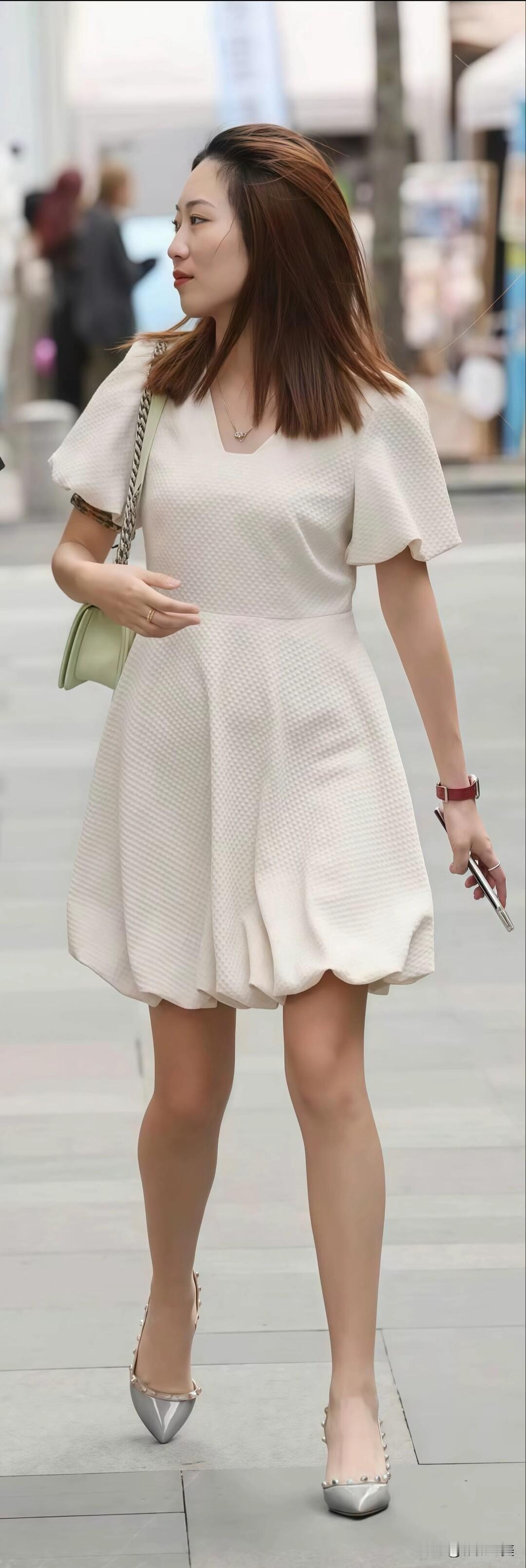 米白色泡泡袖连衣裙自带温柔氛围感,裙摆的花苞设计俏皮又显腿长,日常出街穿简约又吸睛💫