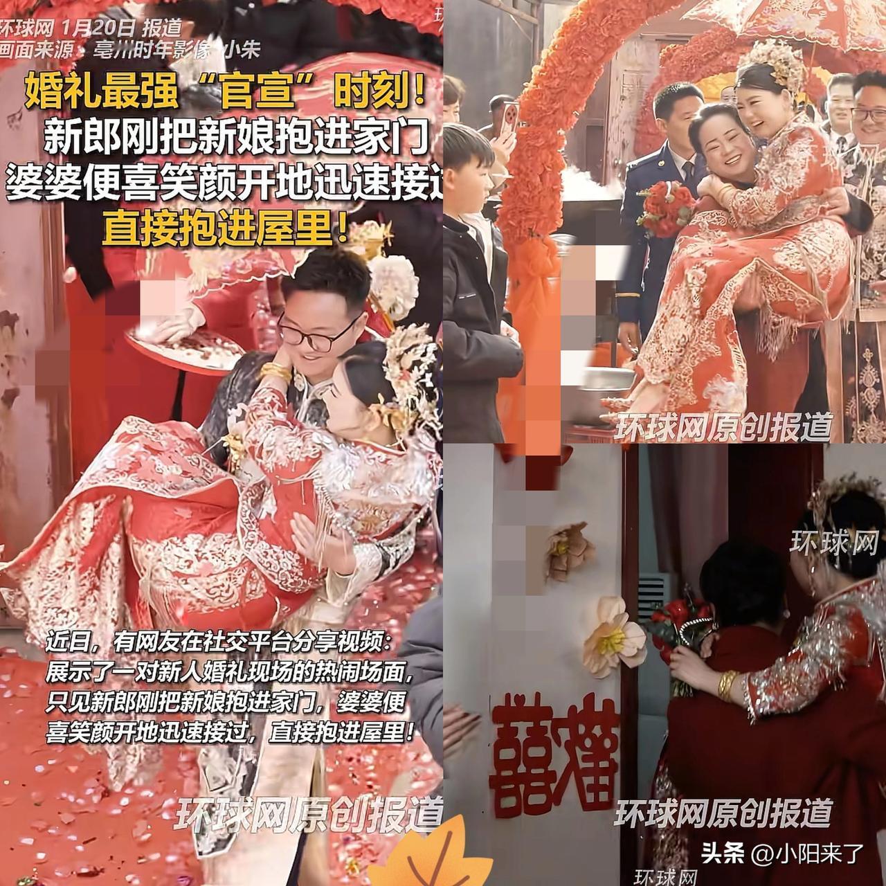 近日,安徽亳州,婚礼现场,新郎抱着新娘进洞房,没走几步,婆婆却迎了上去,没想到,婆婆直接从儿子怀里将儿媳抱着进了屋内,这波操作甜翻全场! 谁见过这么宠儿媳的婆婆?红地毯铺到家门口、龙凤红伞衬得满院喜庆,婆婆一句“脑子一热”,藏的全是盼了多年的“女儿梦”。 儿媳娇羞的笑容瞬间翻倍,婆媳俩笑成同款幸福脸,亲友们又惊又喜,举着手机拍不停。这哪是婆媳初见,分明是亲妈终于盼到了心头宝! 都说婆媳是“天生博弈”,可这一抱直接戳破偏见——家从不是争对错的战场,而是用爱换爱的港湾。 婆婆先掏出真心把儿媳当女儿疼,又怎会换不来儿媳的真心孝敬? 比起那些冷冰冰的规矩,这份发自内心的接纳才是最好的家风。好的婆媳关系从不是忍出来的,而是实打实疼出来的!