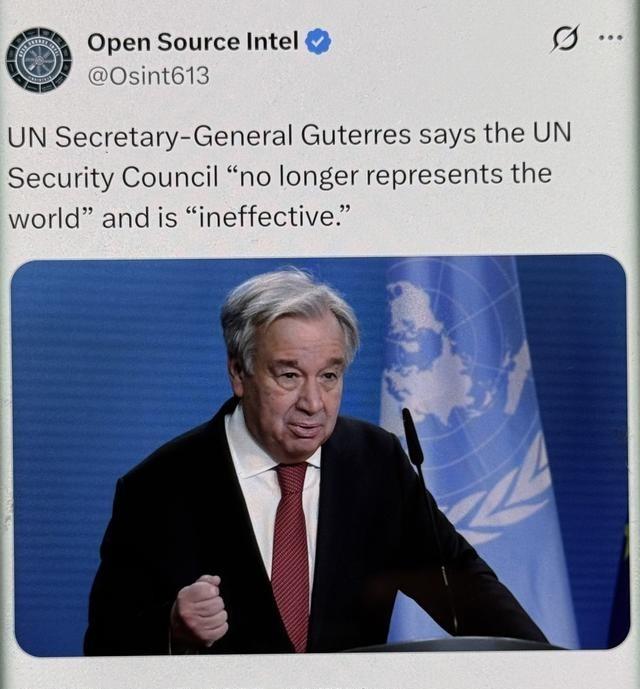 联合国秘书长古特雷斯表示,联合国安理会“已不再代表世界”,并且是“无效的”。 2026年1月BBC采访,联合国秘书长古特雷斯直指安理会结构过时,没法代表当今世界,还没效率。安理会是1945年二战后建的,那时全球才51个国家,人口25亿,现在国家近200个,人口80亿,变化太大,可安理会还那五个常任理事国说了算,美英法中俄,加上十个非常任,发展中国家声音小。非洲50多国,占联合国会员四分之一,却没多少发言权。印度巴西这些新兴经济体,在全球经济占比大,却摸不着常任席位。古特雷斯说,安理会现在代表少数大国利益,不顾多数国家感受,决议往往卡壳。 加沙那边打快两年了,居民没吃没喝没住处,孩子没学上,老人死伤多,安理会想通过停火决议,2025年9月投票,15国里14个同意援助停战,美国一票否决,就黄了。这是美国第六次否决加沙相关议案,明摆着护以色列。规则就是这样,常任一票顶多数,全球意愿白费。俄乌冲突三年了,死伤无数,欧洲经济喘不过气,全球粮价能源价涨,老百姓遭罪。安理会通过停火呼吁,但就是纸上谈兵,没人执行。欧洲想改称俄罗斯全面侵略,俄一票否;俄想加解决根源条款,也没人理。大国互相掐,会议开一堆,战场还打。安理会管不住俄军乌军,更管不住背后送武器搞制裁的。 古特雷斯在采访里还点名美国,说他们觉得权力比国际法重要,多边方案不靠谱,就靠自身影响,有时还踩国际规范。安理会合法性丢了,得改组成,给全世界声音,限否决权,避免死锁。他批评欧洲三个常任成员,太集中。联合国现在危机多,资金缺,职位裁,地缘紧张。特朗普政府推和平委员会,想绕过安理会处理冲突,包括加沙重建,60国受邀,但很多人担心削弱联合国宪章。 改革喊30多年了,谈来谈去没动静。美国提给非洲两个常任席,但没否决权,非洲不干,要平等权利。大国守特权,中小国意见散,进程卡住。古特雷斯多次呼吁限否决,扩代表性,说不改会更瘫痪。2025年联合国80周年,他启动UN80倡议,精简运作,裁秘书处五分之一人,审数千任务,提升效率。印度等国推永久席位讨论,说安理会得跟上地缘现实。 古特雷斯任内推人道援助,视察冲突区,但安理会僵局没破。他2026年底卸任后,可能继续人道或顾问工作,推动公平。话说这事接地气点,大家都知道,国际组织本该帮弱国老百姓,可现在大国博弈,决议成空谈。加沙俄乌这些,苦的是平民,孩子士兵难民都遭罪。安理会失效,等于全球安全阀坏了,热点冲突升级,经济民生受累。古特雷斯敲警钟,说1945架构扛不住2026世界,得改。可大国谁肯让步?中小国怎么联合?这些问题摆着,国际秩序重构十字路口,没人知下一步。 联合国建时是防大战,现在小冲突都管不住,公平正义在霸权前多脆弱。古特雷斯的话戳中痛点,安理会不代表多数利益,解决能力弱,这是事实。拖下去,世界更乱,苦难更多。得清醒,建立公平代表性秩序,让和平不遥远。