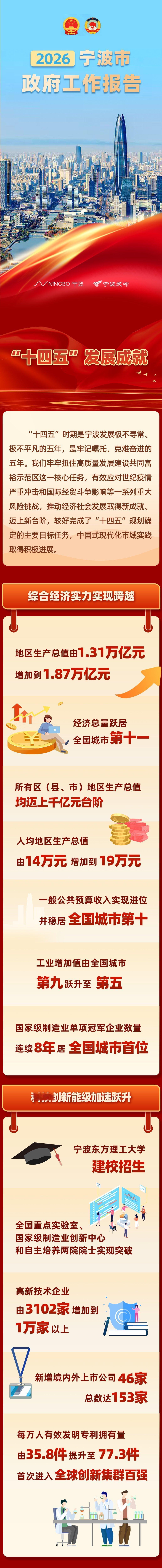 宁波回顾2025展望20261月21日宁波市第十六届人民代表大会第六次会议隆重开幕会上市长汤飞帆向大会作 政 府 工 作 报 告一起来看↓↓↓