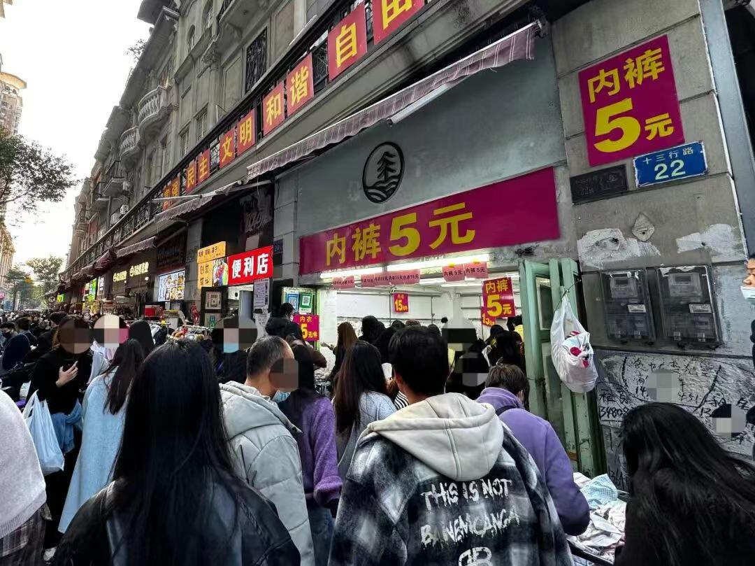 【广州十三行服装市场清仓】今年1月以来,广州十三行服装市场陆续清场特卖,吸引大批街坊和全国游客前来扫货。甚至有专程“打飞的”的游客,拖着行李箱来扫货。 据了解,广州十三行服装商圈商铺档口约2万个,其中以新中国大厦、红遍天CENTRE、诚大时装广场为代表的服装城,是每年打折清仓的主战场。而最近部分商家清仓价格比平时最高优惠了近一半。 羽绒服39元、打底衫15元、内裤5元一条、棉袜10元一扎等等,价格便宜且质量还不错。 按照往年经验来看,预计2月初人还会更多。 不过说真的虽然价格是便宜了,但是一般这种清仓购物体验都不太好,人太多人挤人,而且一般商家都不提供试穿,分分钟累了大半天抢购回家才发现不喜欢不合适,又没得退,浪费体力浪费钱。