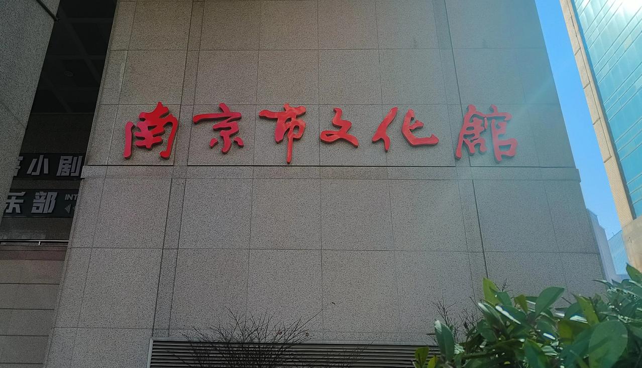 南京市文化馆馆名题字,猛一看是著名书法家武中奇题字,因为一看像武体,可是仔细一端祥,又有几个字写的又不是武体,而且整体看上去笔力较弱,就断定这不是武中奇所题。因为没有落款,只好猜测,而应该是练过武体的书法家所题,或武中奇弟子或武中奇的女儿所题。有知道这字是谁题的吗,请留言讨论!