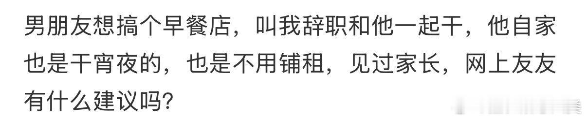 男朋友想开早餐店,希望我辞职与他共同经营。