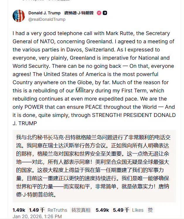 特朗普把北约秘书长吕特发给他的短信也发到网上了! 内容还是相当的炸裂,这个表述的关键词很明显,一般人不会这样使用。可能特朗普就喜欢听这种话,所以看起来他对这些话相当的满意。 各位是怎么看的?欢迎评论区留言。
