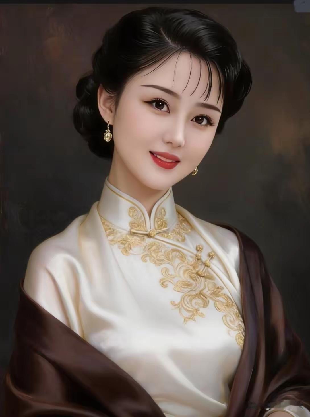 优雅古典美人,金丝刺绣旗袍,韵味十足!