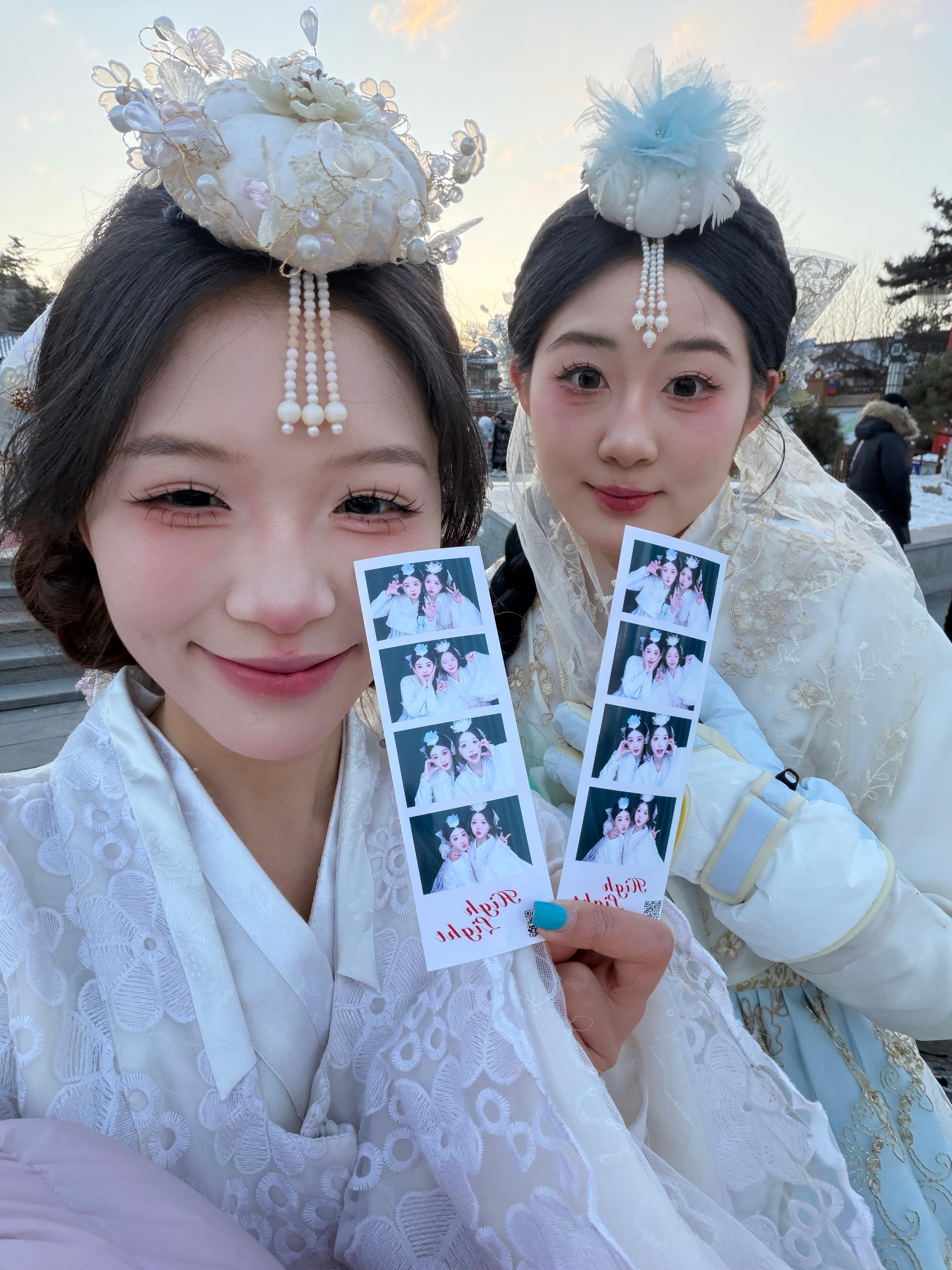 今天当了一天的延吉公主^^好漂亮好喜欢这身妆造还遇到了好多好多认识我的宝宝!而且都喊我yjq哈哈哈哈哈哈太搞笑了。前面三张是pyq昨天有个宝宝给我评论!说希望偶遇。因为刚好我们的行程都是今天来民俗园做妆造!结果我刚到没多久就偶遇上了。她还一直在帮我拍照哈哈哈哈好开心!漂亮吗漂亮吗!