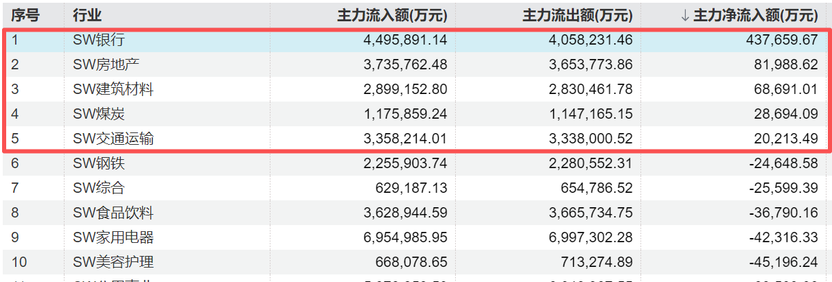 近5个交易日资金正往低估值板块流动