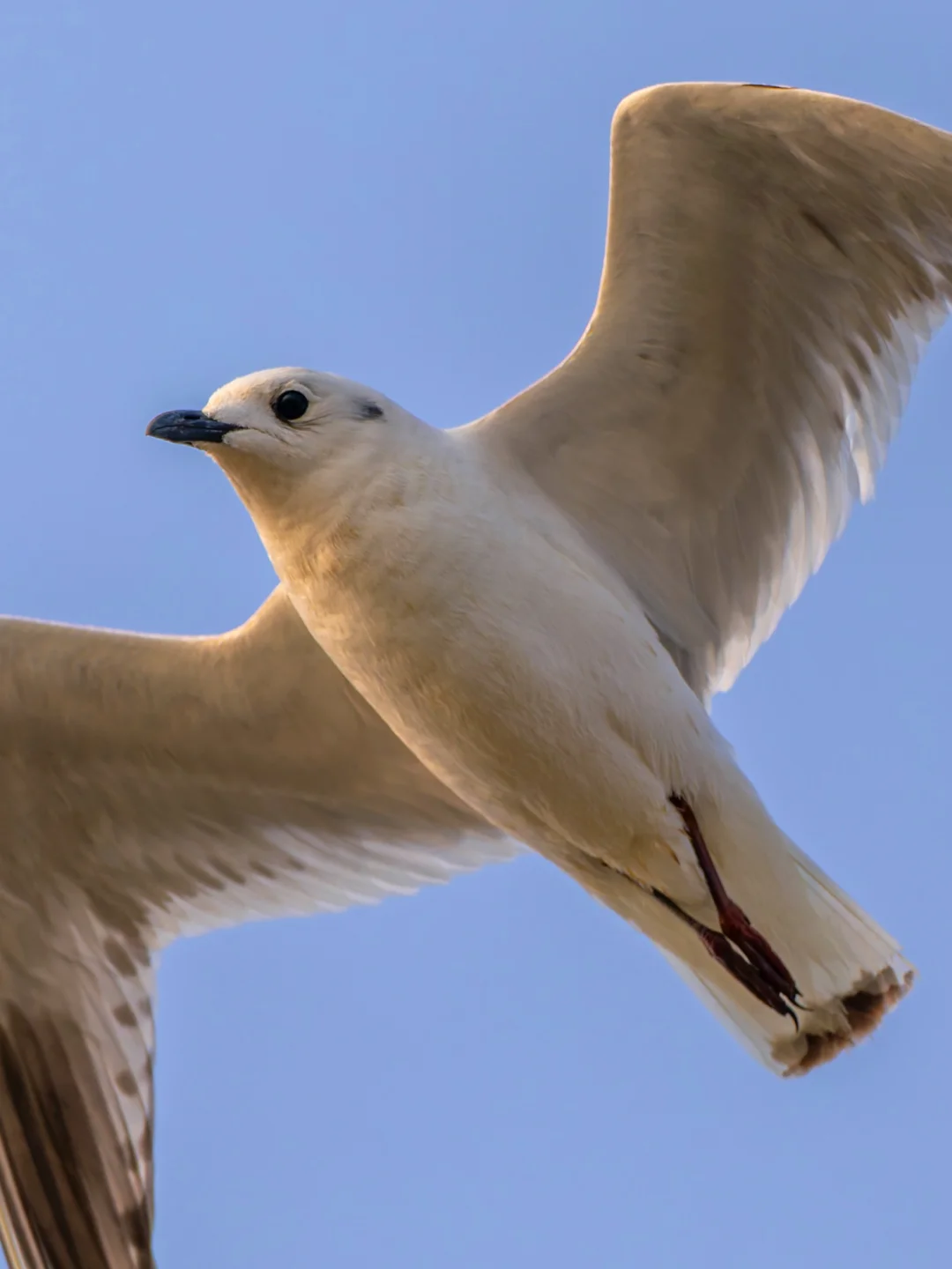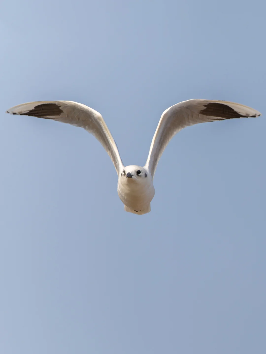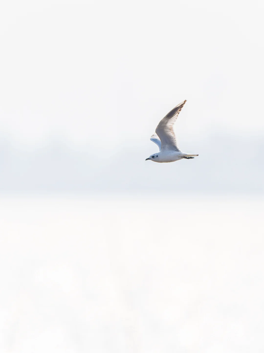 黑嘴鸥看上去非常优雅,体型娇小,从名字可以看出,它们显著特征是全黑喙。繁殖季头部全黑,不过现在是冬季,它们头部白色,眼前后各有一个黑斑。第一冬羽的翅膀图案和红嘴鸥非常像,但头部以及粗重的黑喙像小鸥,比小鸥稍微大一点。