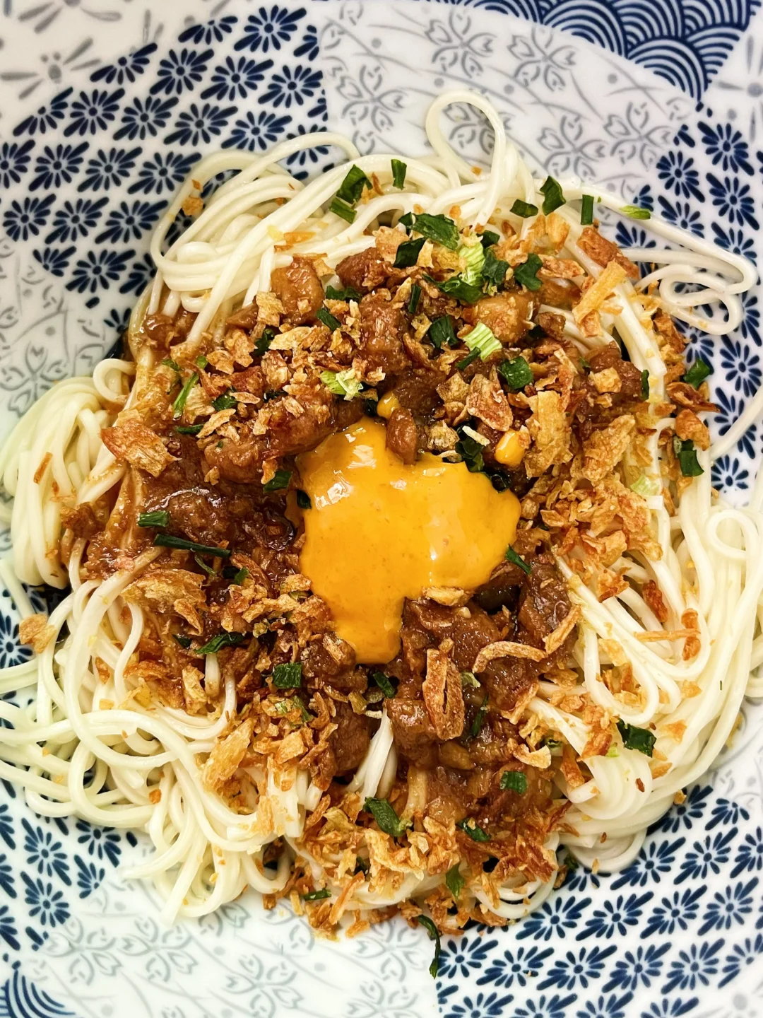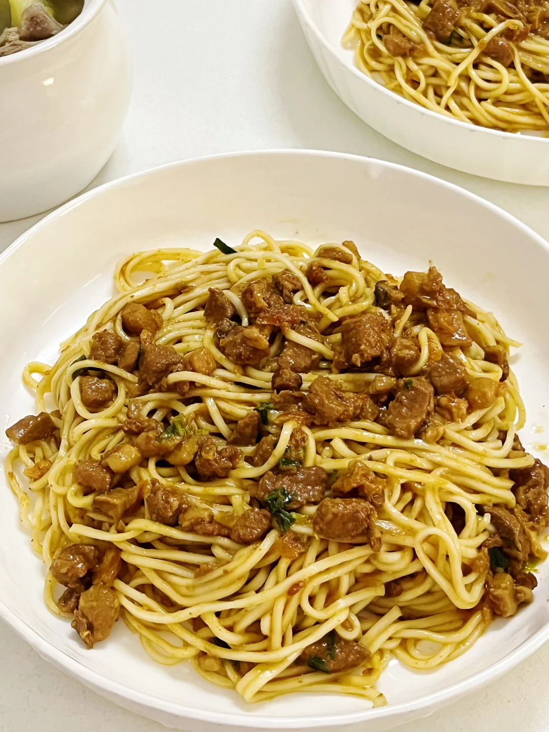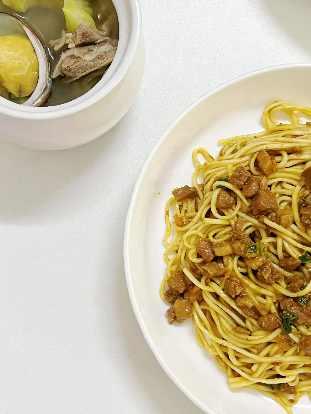 冬天的厨房,只想简单点。用囤的“大餐”轻松搞定一桌,清爽的苦瓜、酸甜的金桔,再配上一碗酱香浓郁的拌面,满足两个人挑剔的胃。 ------ 【今日菜单】 🍈 脆蜜金桔(开胃解腻) 🥒 凉瓜鲍鱼头(清爽降火) 🍜 肉燥拌面(暖心主食) 【拌面食材】 关庙面 2块|黑猪肉燥包 2袋|红葱酥|咸蛋黄酱 【三步做法】 1️⃣ 水开煮面4分钟,捞出放入碗中 2️⃣ 肉燥包沸水加热5分钟,趁热连汤淋在面上 3️⃣ 撒上古法红葱酥,挤一圈咸蛋黄酱,拌匀即可! ✨ 吃饭笔记: • 苦瓜鲍鱼清爽,正好平衡肉燥的浓郁 • 金桔酸甜,饭前开胃饭后解腻 • 肉燥能嚼到大块黑猪肉,酱汁咸香带甜 •古法红葱酥是灵魂!拌开满屋飘香 •面条QQ的很有嚼劲,吸饱汤汁超入味 • 简单组合,半小时搞定夏日温馨二人食 今天吃什么