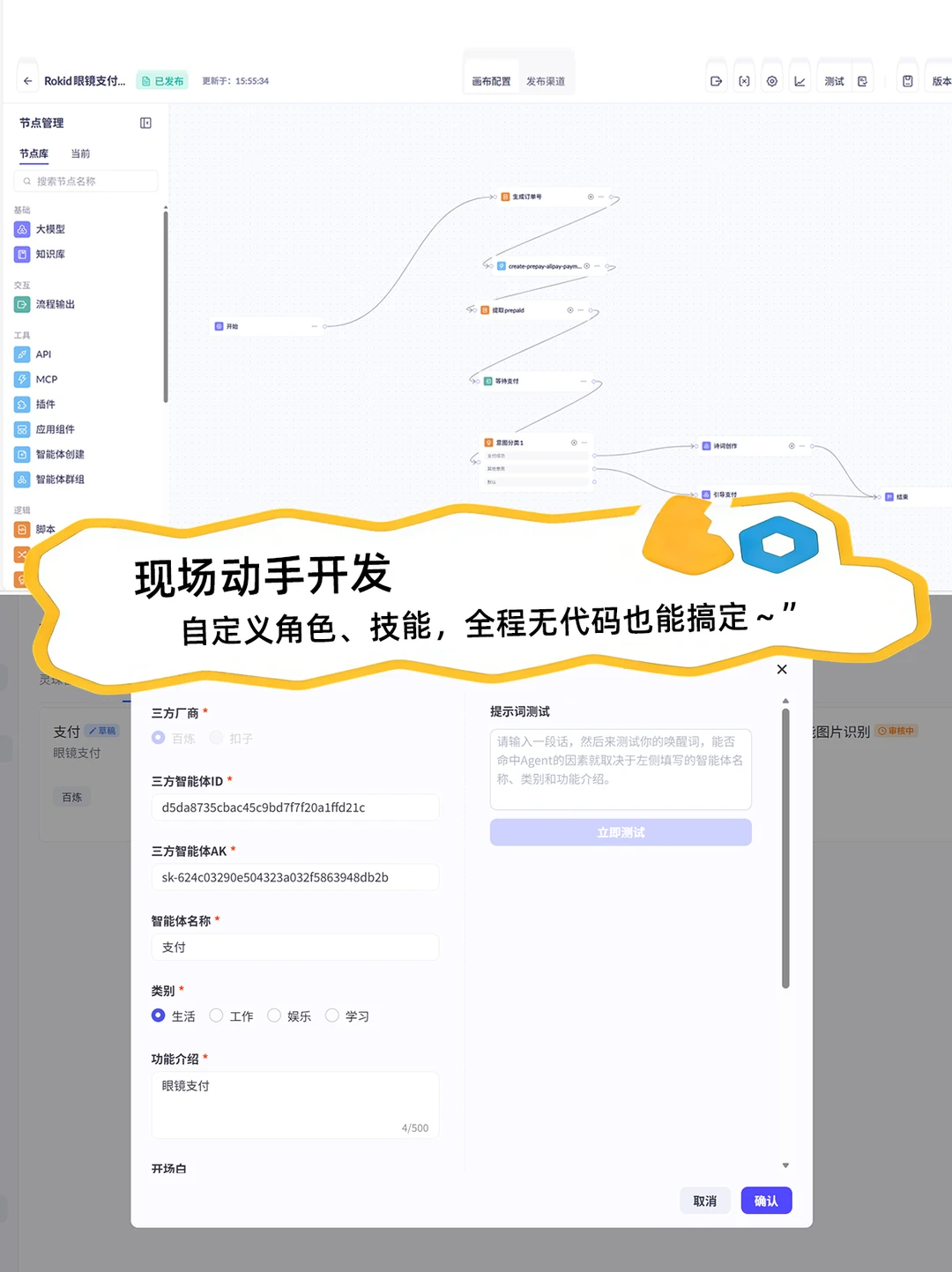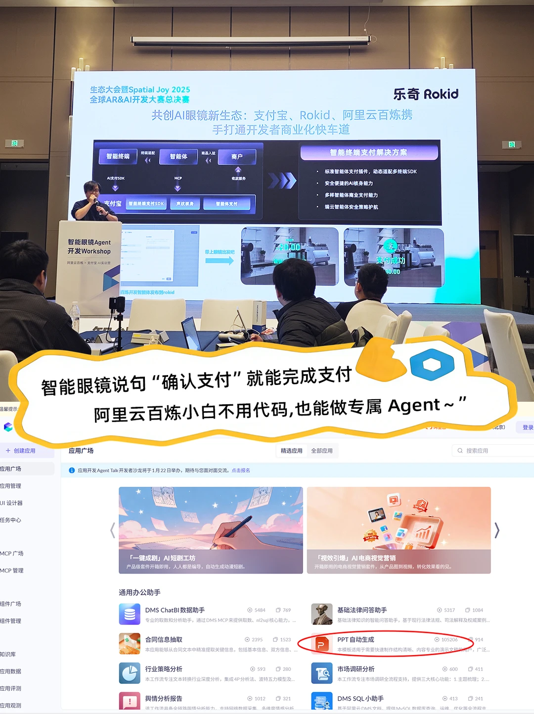 现场不是枯燥讲课,而是有工作人员手把手带着练!从Agent构建开始,一步步教怎么从0到1做AI应用,老师讲得超细致,连我这种没基础的都能跟上,完全不卡壳~