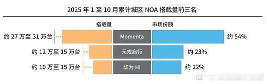 看到一组数据,2025 年 1-10 月辅助驾驶城区 NOA 搭载量前三名:第一是 Momenta 这是毫无疑问的,占据了一半以上的市场;元戎居然力压华为成为第二,装机量占比约 23%,华为是 22%。元戎的主要客户包括了长城和吉利,长城大家都知道的,魏牌、坦克用的都是他们的方案;吉利主要是拿下了很多 H5 的车型,比如最近上市的吉利银河 V900 就是元戎的方案。今年 2026 年,这几个主要的供应商装机量都会继续上涨。吉利银河V900全球上市26.98万起